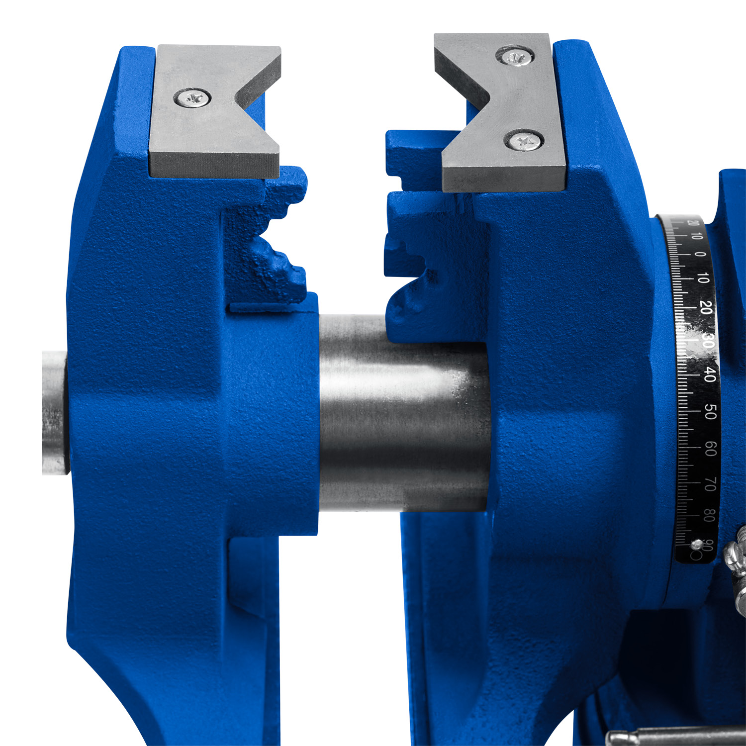 - Поворотное основание позволяет перемещать корпус тисков в горизонтальной плоскости на угол от 0 до 360 градусов