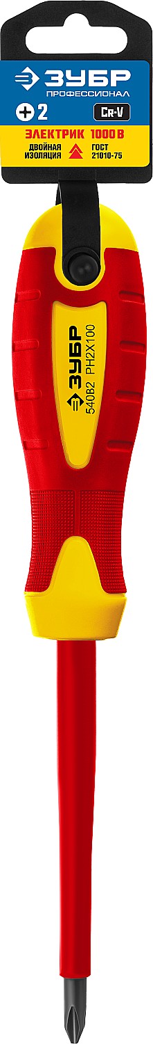 ЗУБР Электрик, PH2 х 100 мм, диэлектрическая отвёртка, Профессионал (25262-2-100)