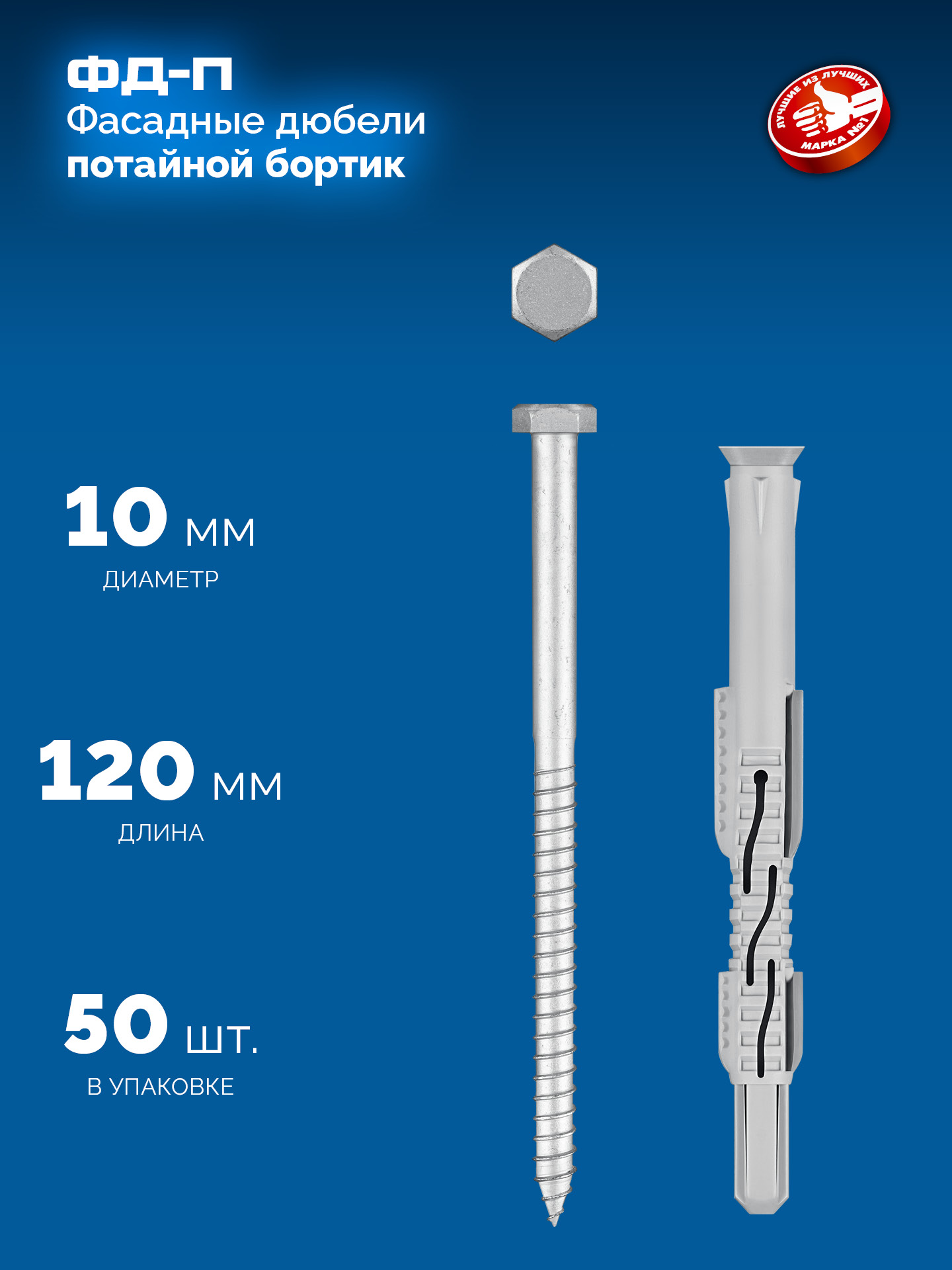 - Потайной бортик предотвращает проваливание дюбеля в отверстие