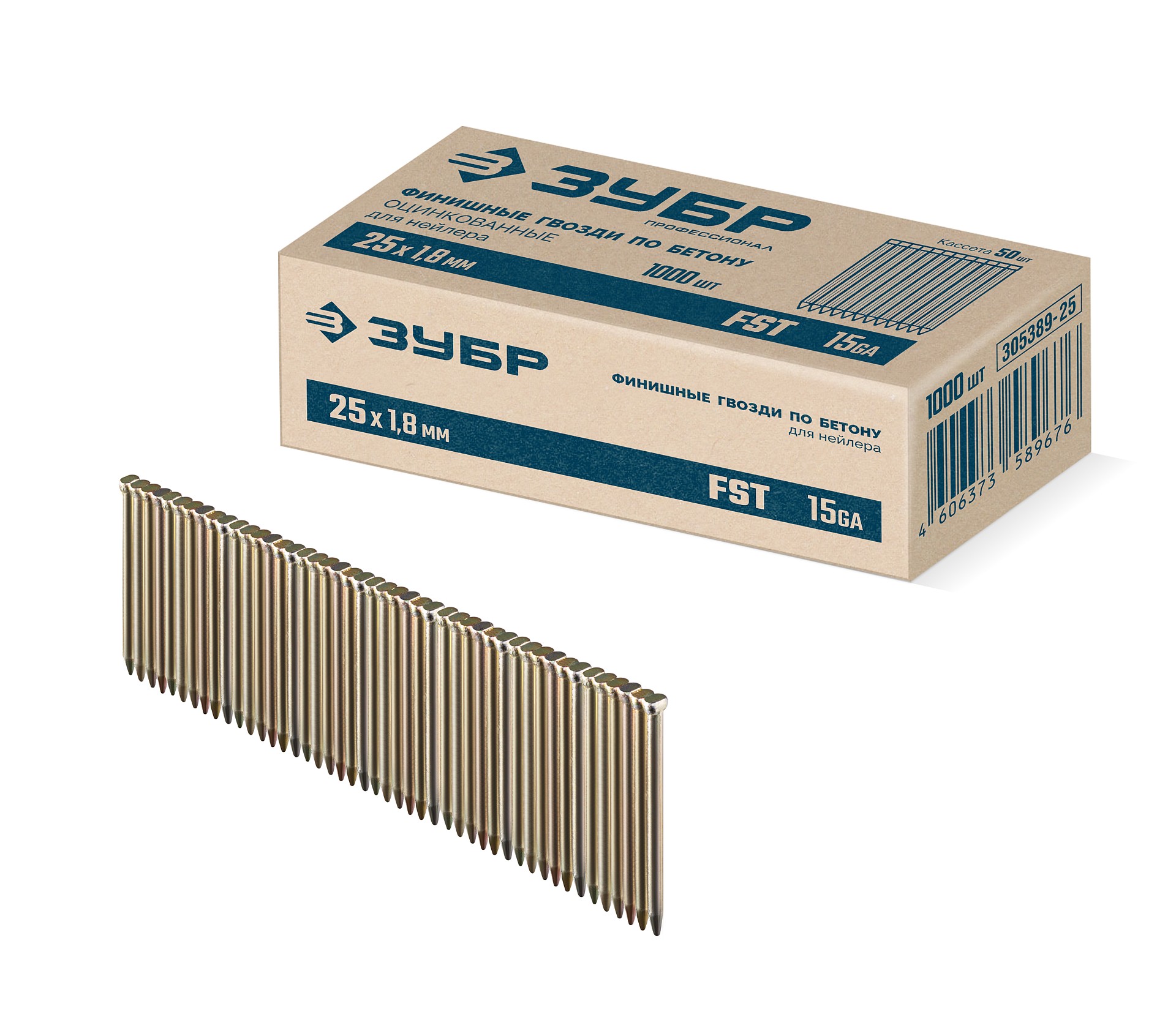 ЗУБР FST 25 х 1.8 мм, финишные гвозди по бетону оцинкованные, калибр 15GA, 1000 шт (305389-25)
