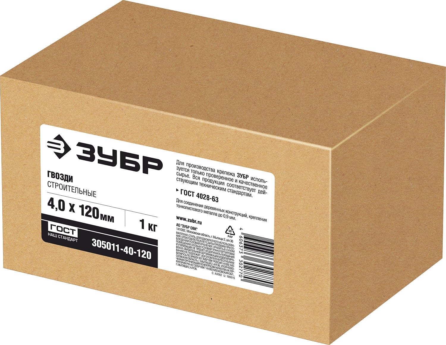 ЗУБР ГОСТ 4028-63, 120 x 4 мм, 1 кг, строительные гвозди (305011-40-120)