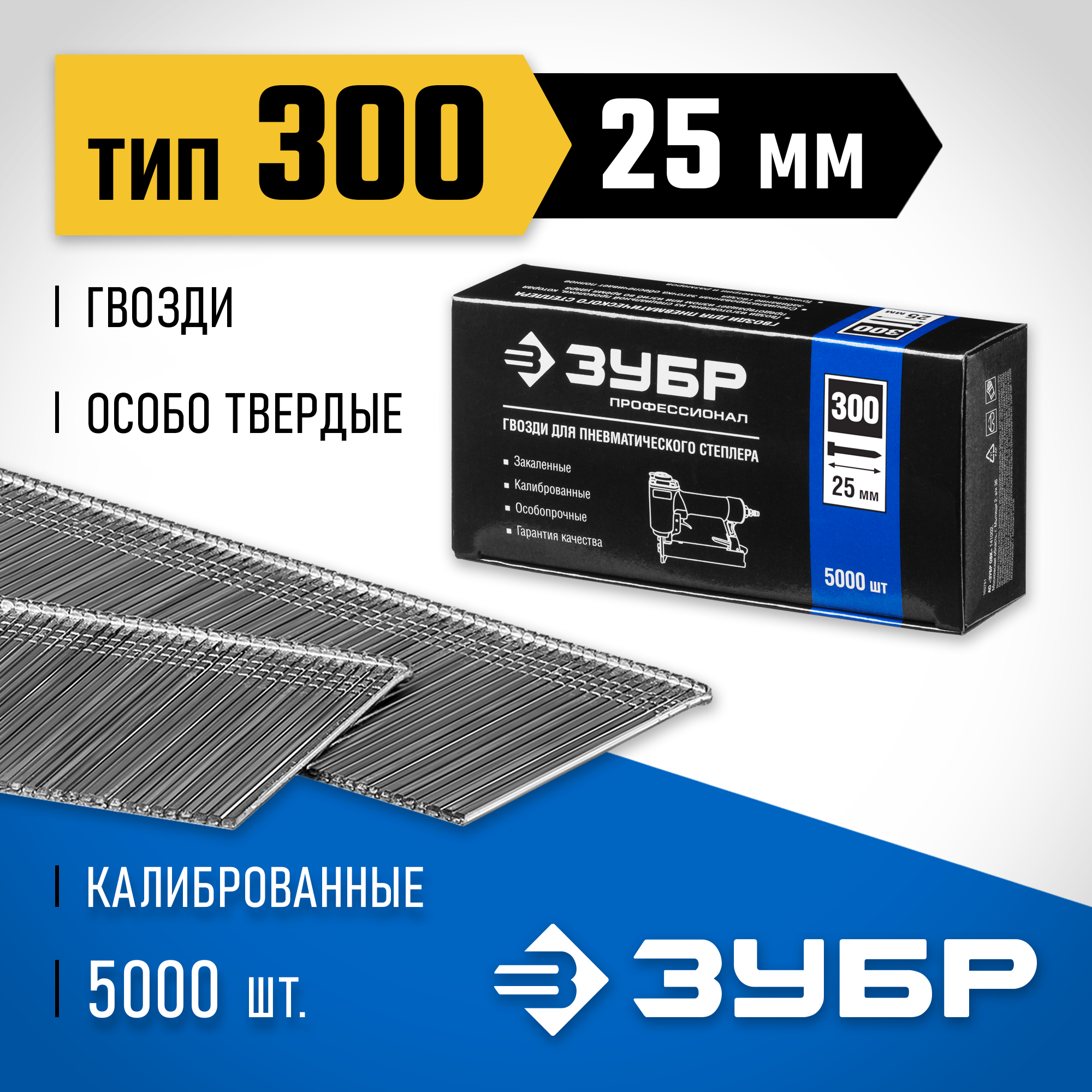 ЗУБР гвозди тип 300 (47/J/F), 25 мм, калибр 18GA. 5000 шт. Профессионал (31830-25)
