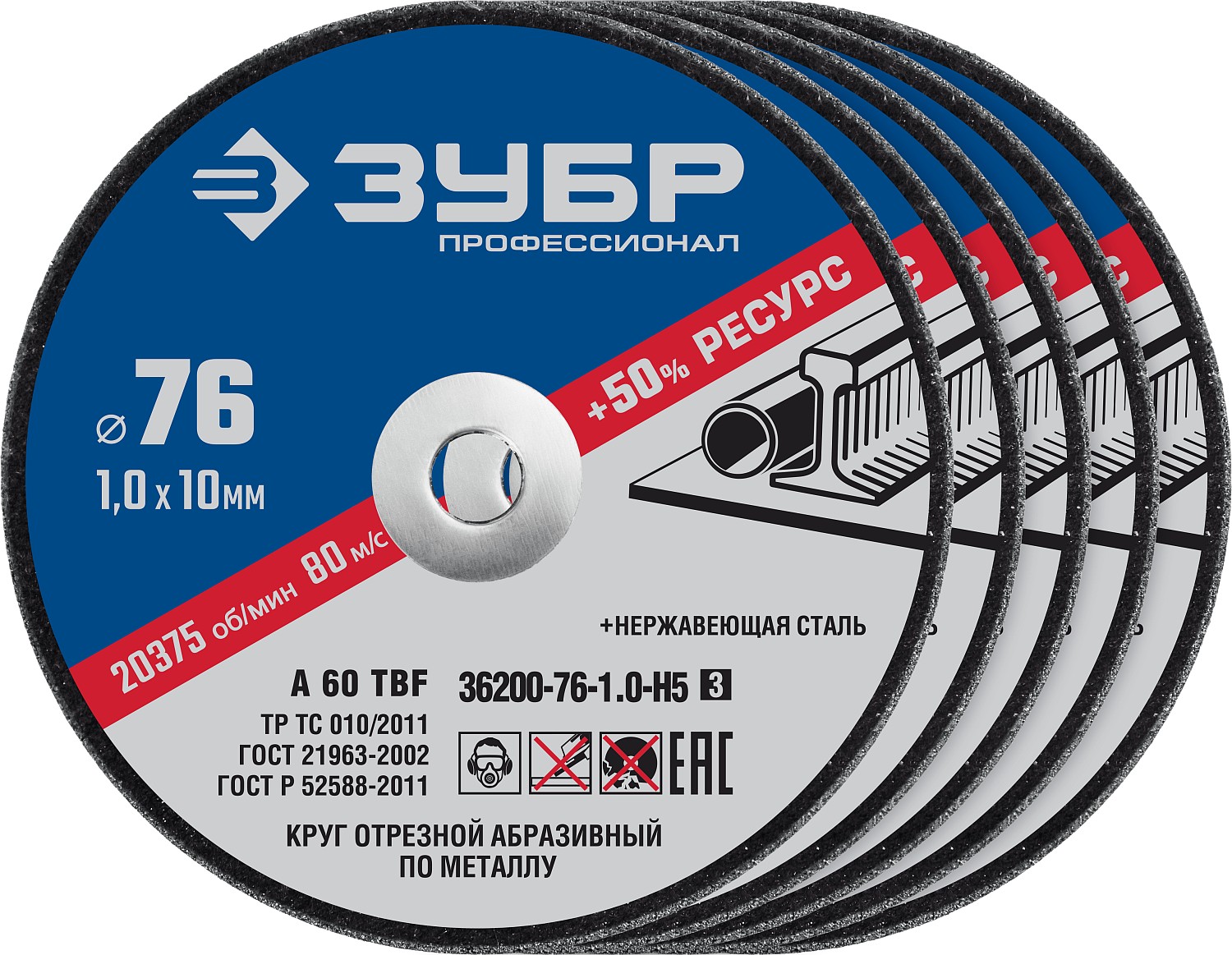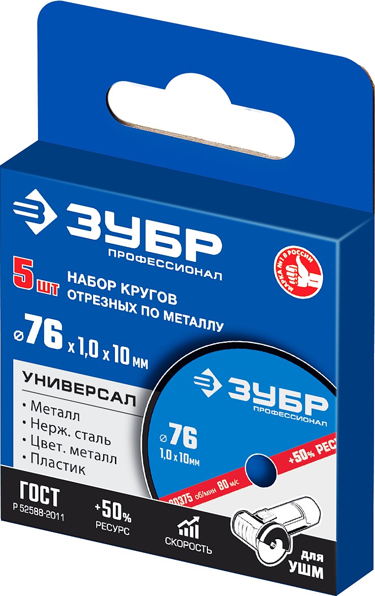 ЗУБР Х-2 76 х 1.0 х 10 мм набор для мини-УШМ 5 дисков отрезных по металлу, Профессионал (36200-76-1.0-H5)