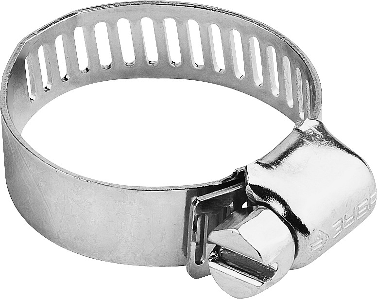 Стальной червячный хомут состоит из штампованной ленты и винта с червячной резьбой. По всей длине ленты имеются просечки, расположенные на одинаковом расстоянии друг от друга. При вращении винта лента сжимается, благодаря чему создается надежное и герметичное соединение шлангов, различных труб, и т.д. Червячный винт снабжен шестигранной головкой под ключ 6 мм и шлицем SL, что позволяет использовать при монтаже гаечный ключ или шлицевую отвертку.