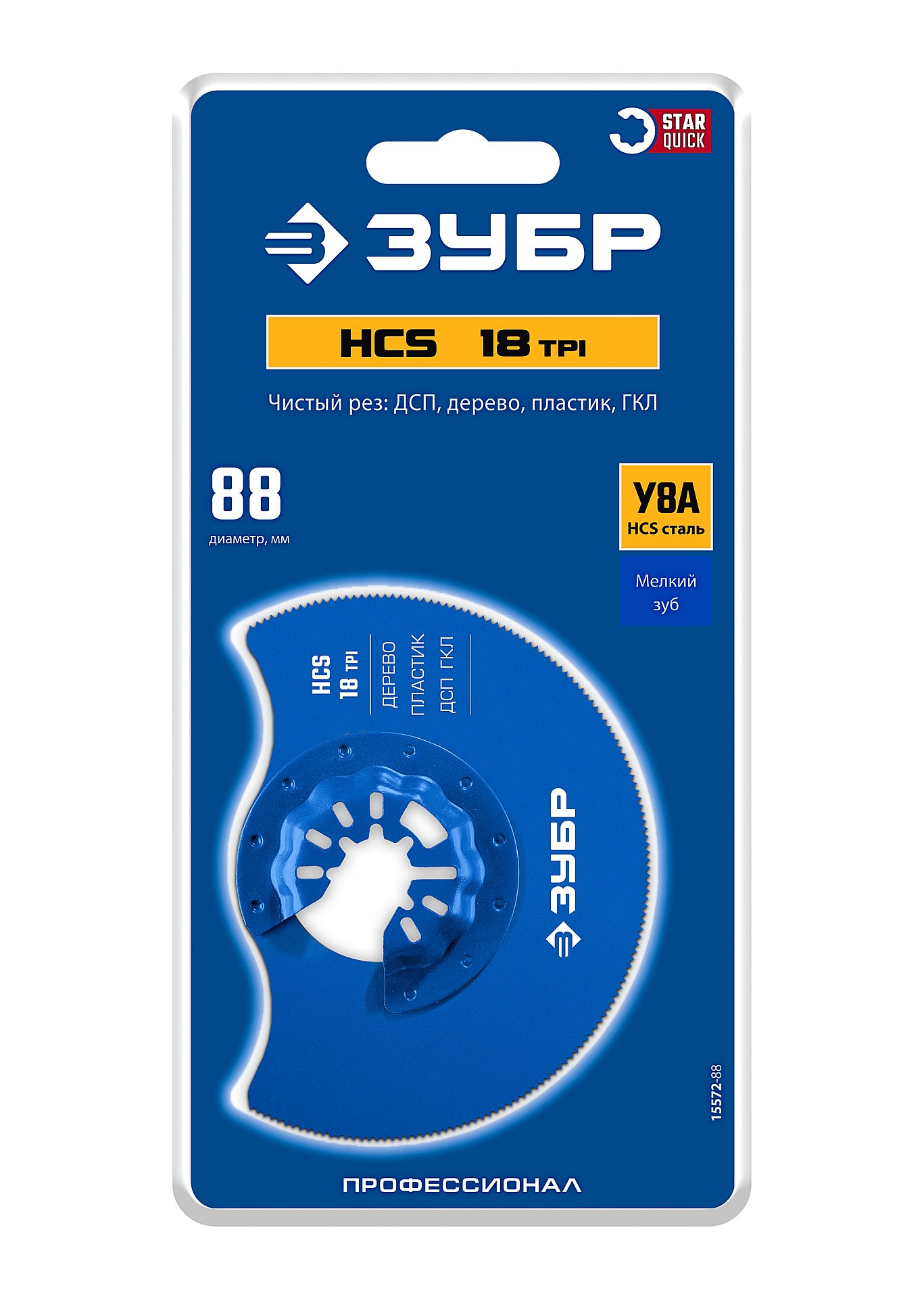 ЗУБР HCS 88 мм, 18TPI полотно пильное дисковое, чистый рез: дерево, пластик, ДСП, ГКЛ, StarQuick (15572-88)