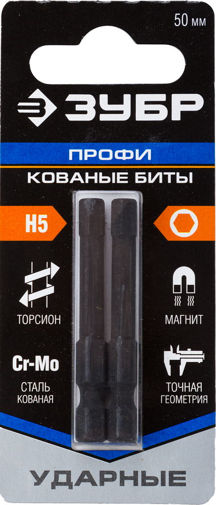 ЗУБР Hex 5, 50 мм, 2 шт, ударные биты, Профессионал (26027-5-50-2)