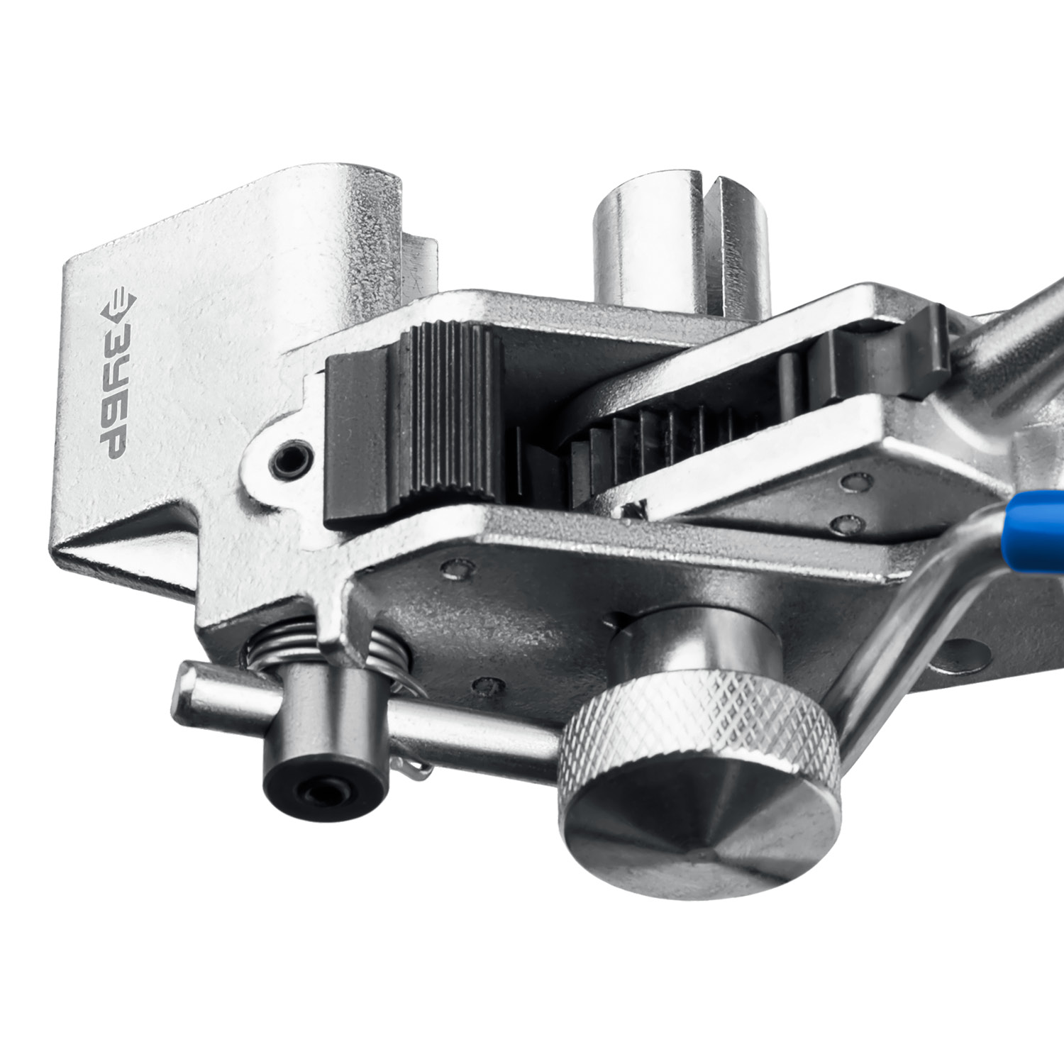 Инструмент 2в1 для затяжки стальных лент предназначен для быстрой и надёжной стяжки и обрезки. Ширина затягиваемых металлических лент до 20 мм. Цельнометаллический корпус с защитным покрытием. Усиленный нож для обрезки ленты.