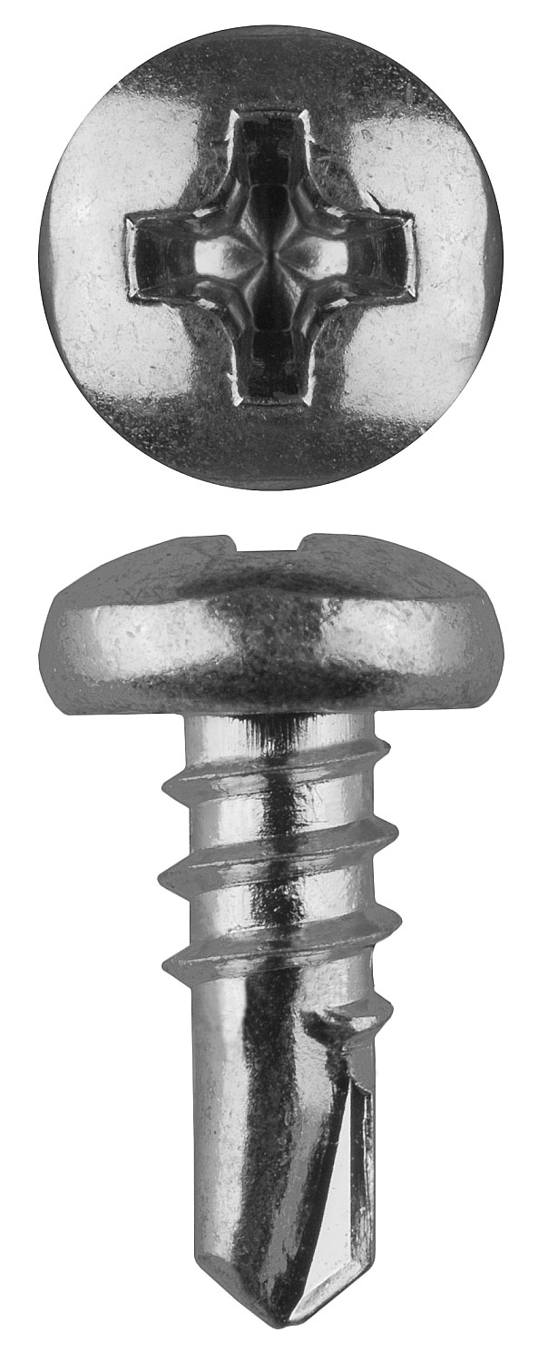 Саморезы со сферической головкой и сверлом для листового металла изготовлены из стального прутка с высоким содержанием углерода. Контроль за геометрией самореза начинается с калибровки прутка и заканчивается тщательной проверкой размеров готового изделия. Нормативная твердость стали достигается термической обработкой. Поверхностная твердость мин. 560HV, твердость в сердцевине 240-425HV. Саморезы легко вкручиваются обычным шуруповертом или отверткой с крестообразным шлицем PH2 (DIN). Предварительное сверление в скрепляемых материалах не требуется.