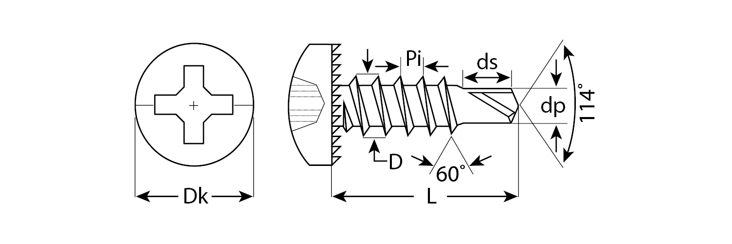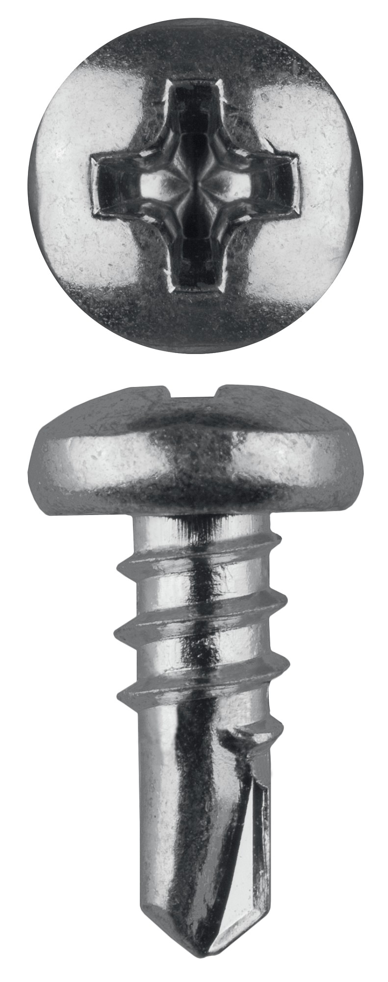 Саморезы со сферической головкой и сверлом для листового металла изготовлены из стального прутка с высоким содержанием углерода. Контроль за геометрией самореза начинается с калибровки прутка и заканчивается тщательной проверкой размеров готового изделия. Нормативная твердость стали достигается термической обработкой. Поверхностная твердость мин. 560HV, твердость в сердцевине 240-425HV. Саморезы легко вкручиваются обычным шуруповертом или отверткой с крестообразным шлицем PH2 (DIN). Предварительное сверление в скрепляемых материалах не требуется.