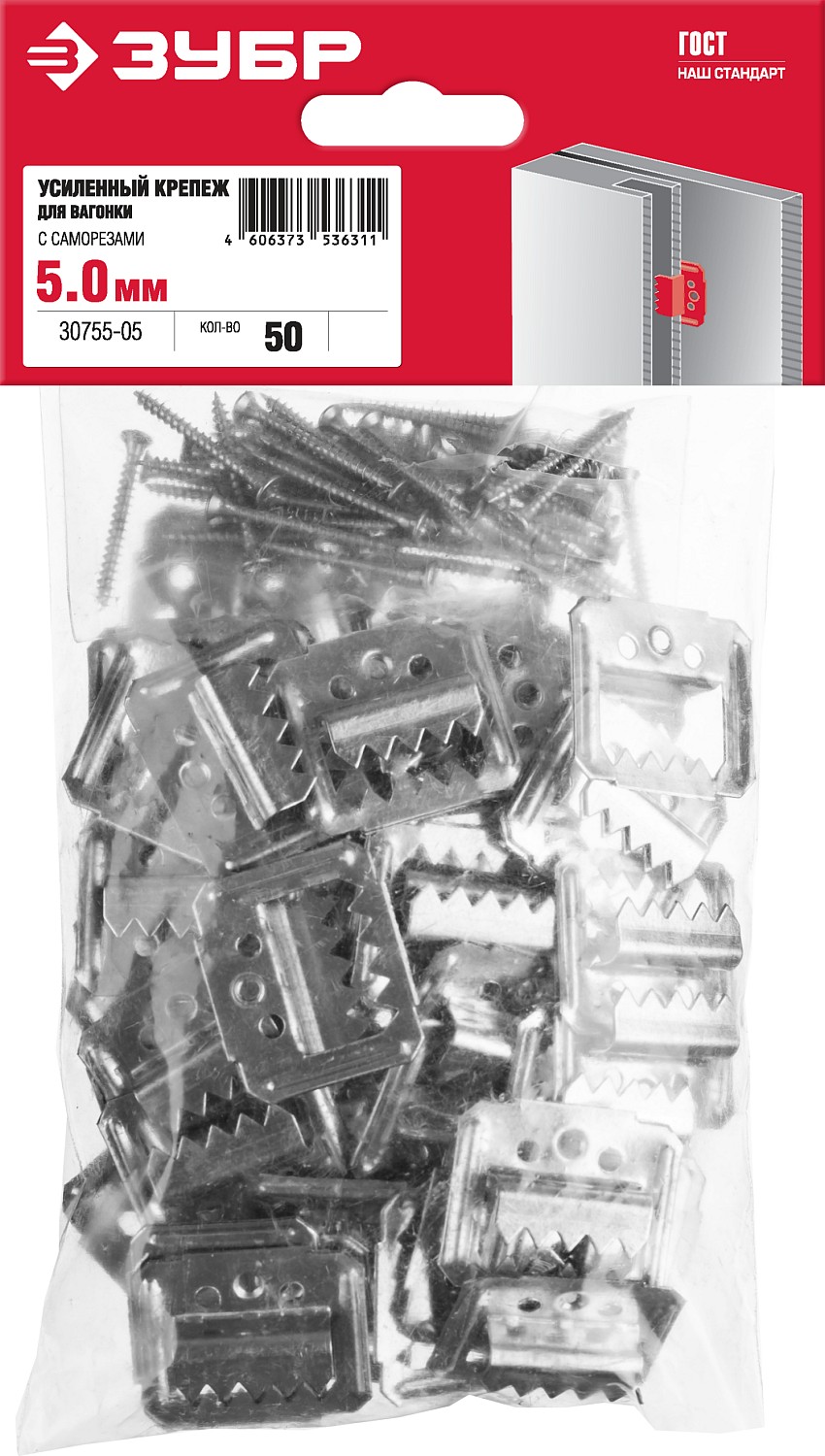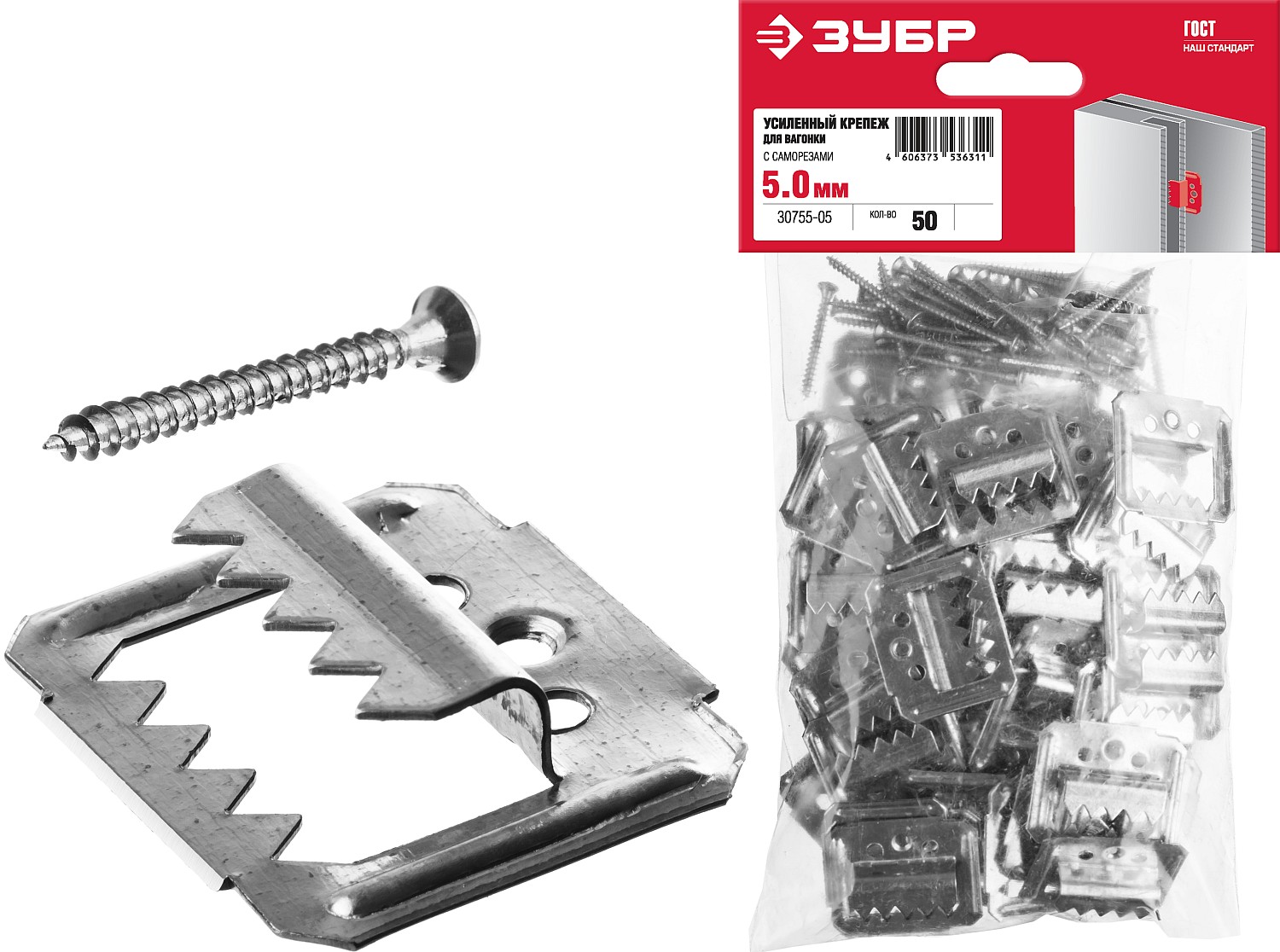 ЗУБР Кляймер-У2, 5 мм, 50 шт, усиленный крепеж для вагонки с саморезами (30755-05)
