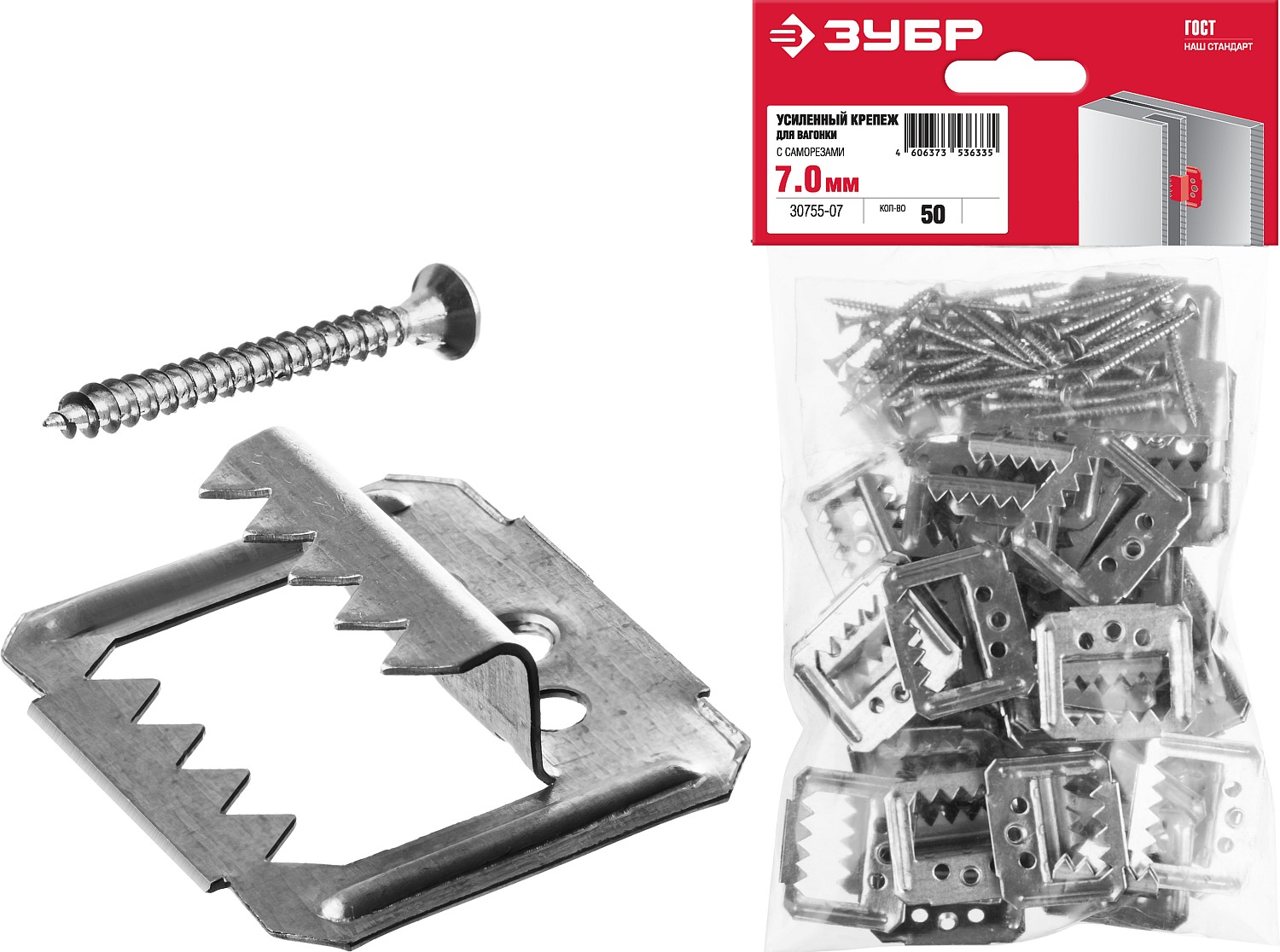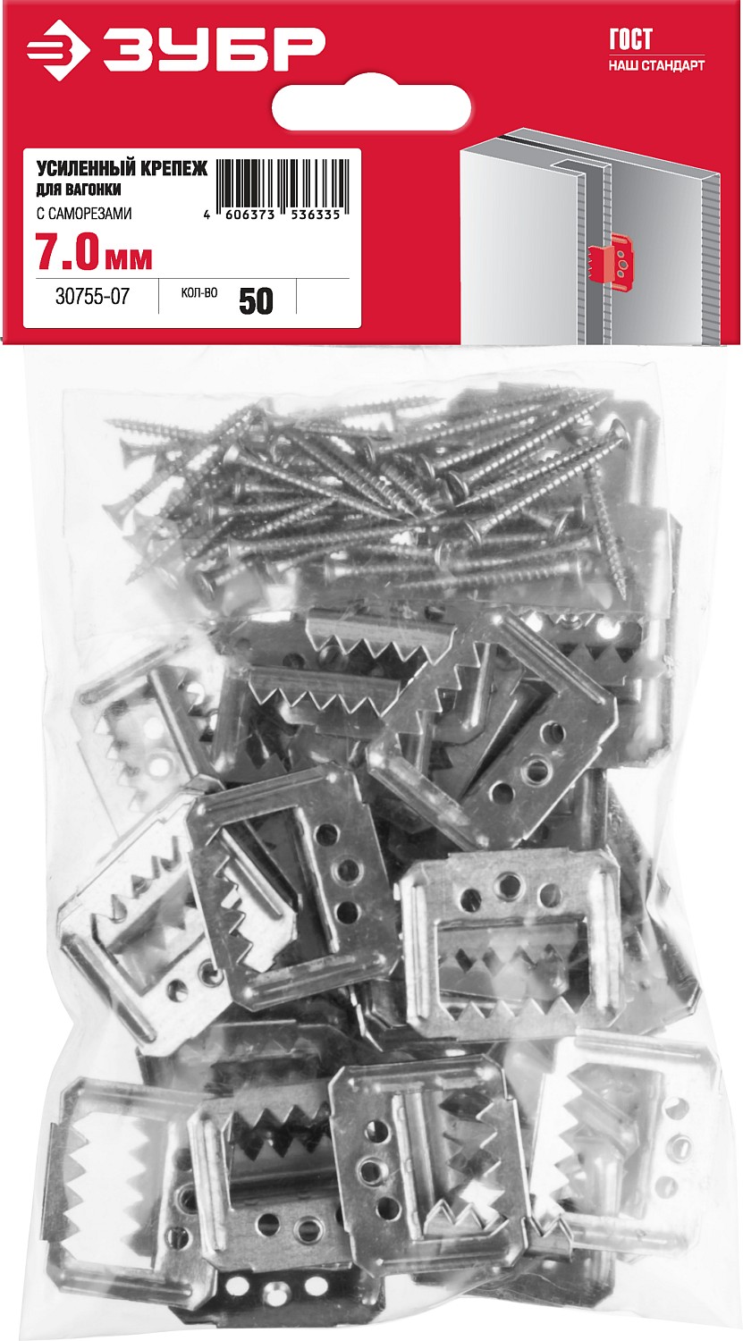 ЗУБР Кляймер-У2, 7 мм, 50 шт, усиленный крепеж для вагонки с саморезами (30755-07)
