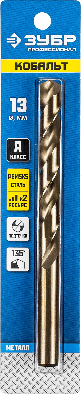 ЗУБР Кобальт, 13.0 х 151 мм, сталь Р6М5К5, класс А, сверло по металлу, Профессионал (29626-13)