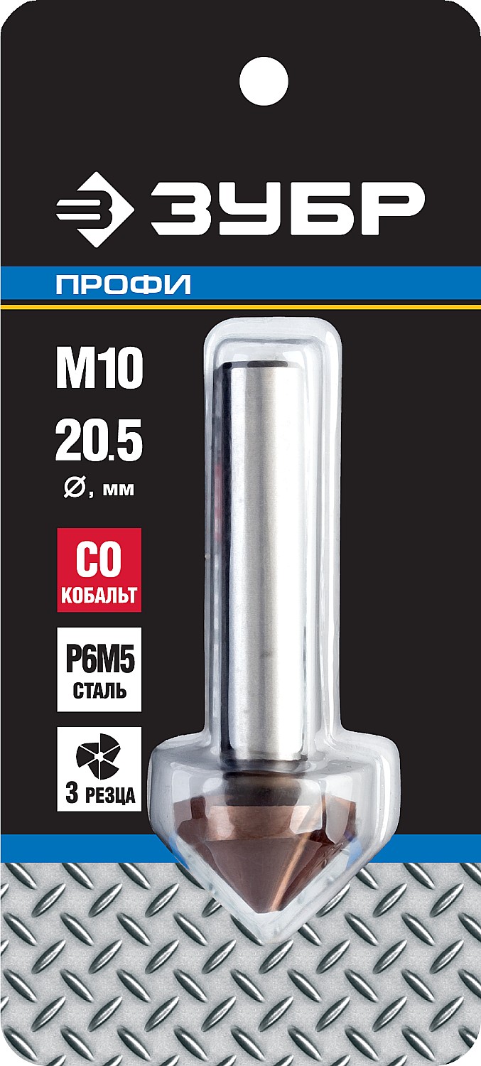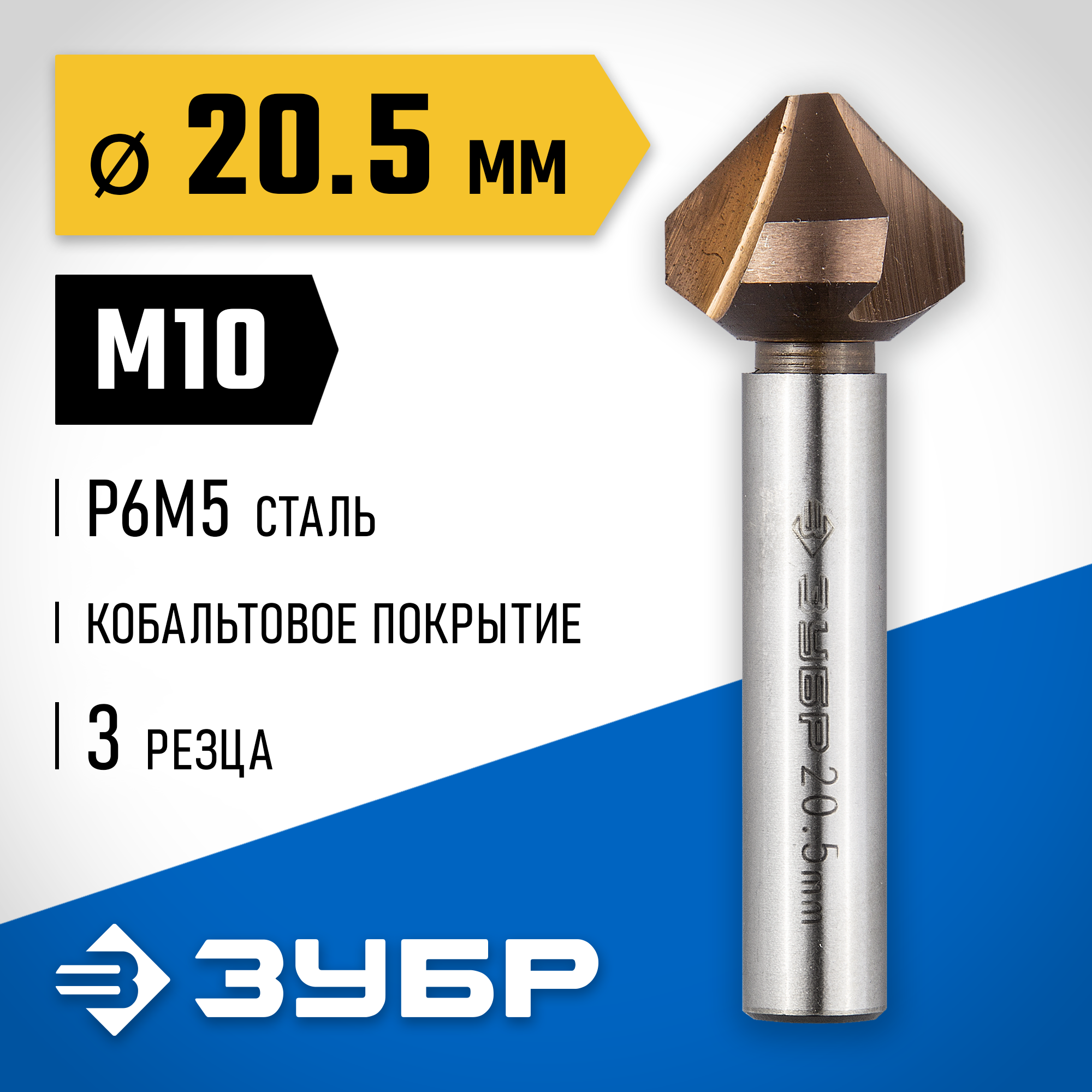ЗУБР Кобальт, 20.5 x 63 мм, для раззенковки М10, кобальтовое покрытие, конусный зенкер, Профессионал (29732-10)