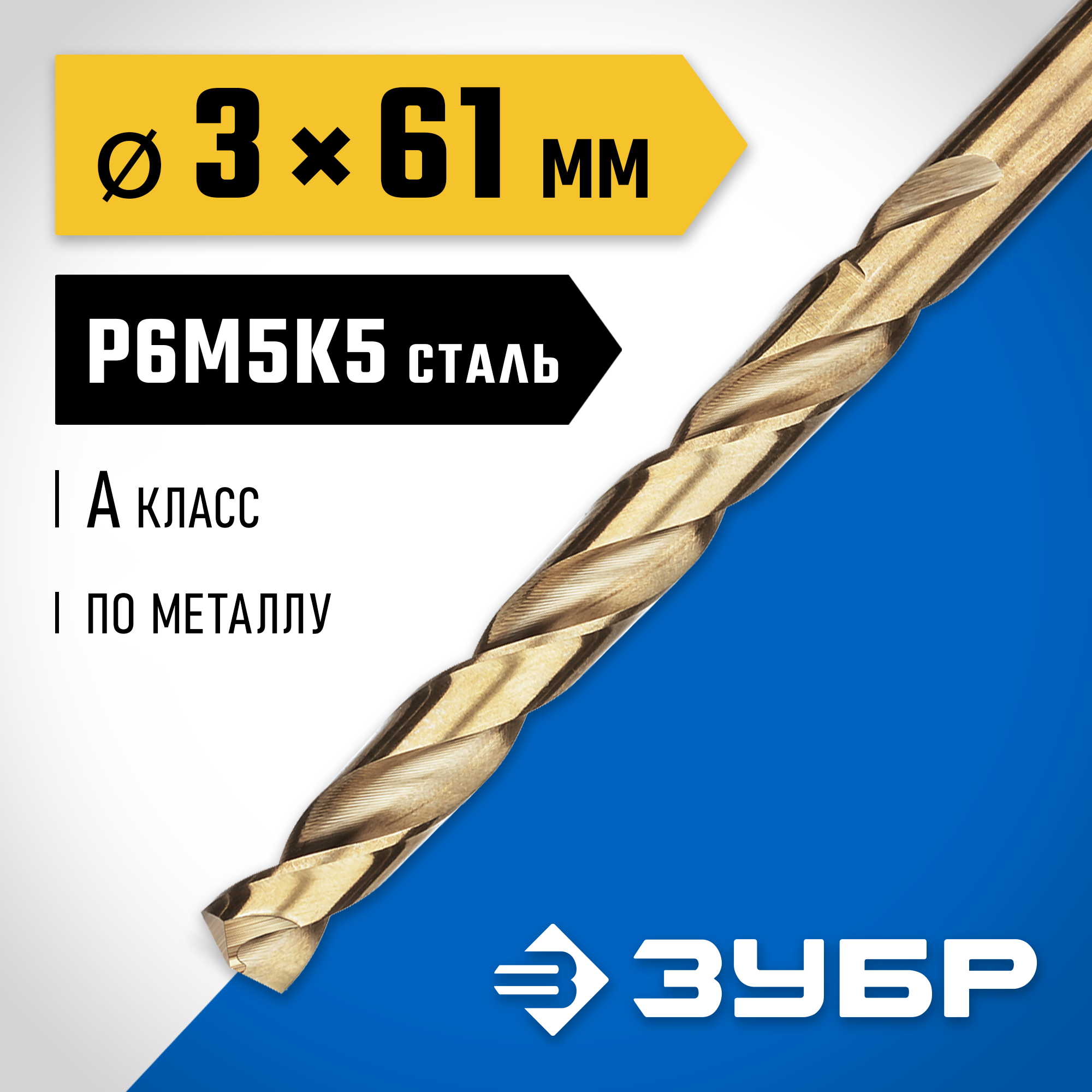 ЗУБР Кобальт, 3.0 х 61 мм, сталь Р6М5К5, класс А, сверло по металлу, Профессионал (29626-3)