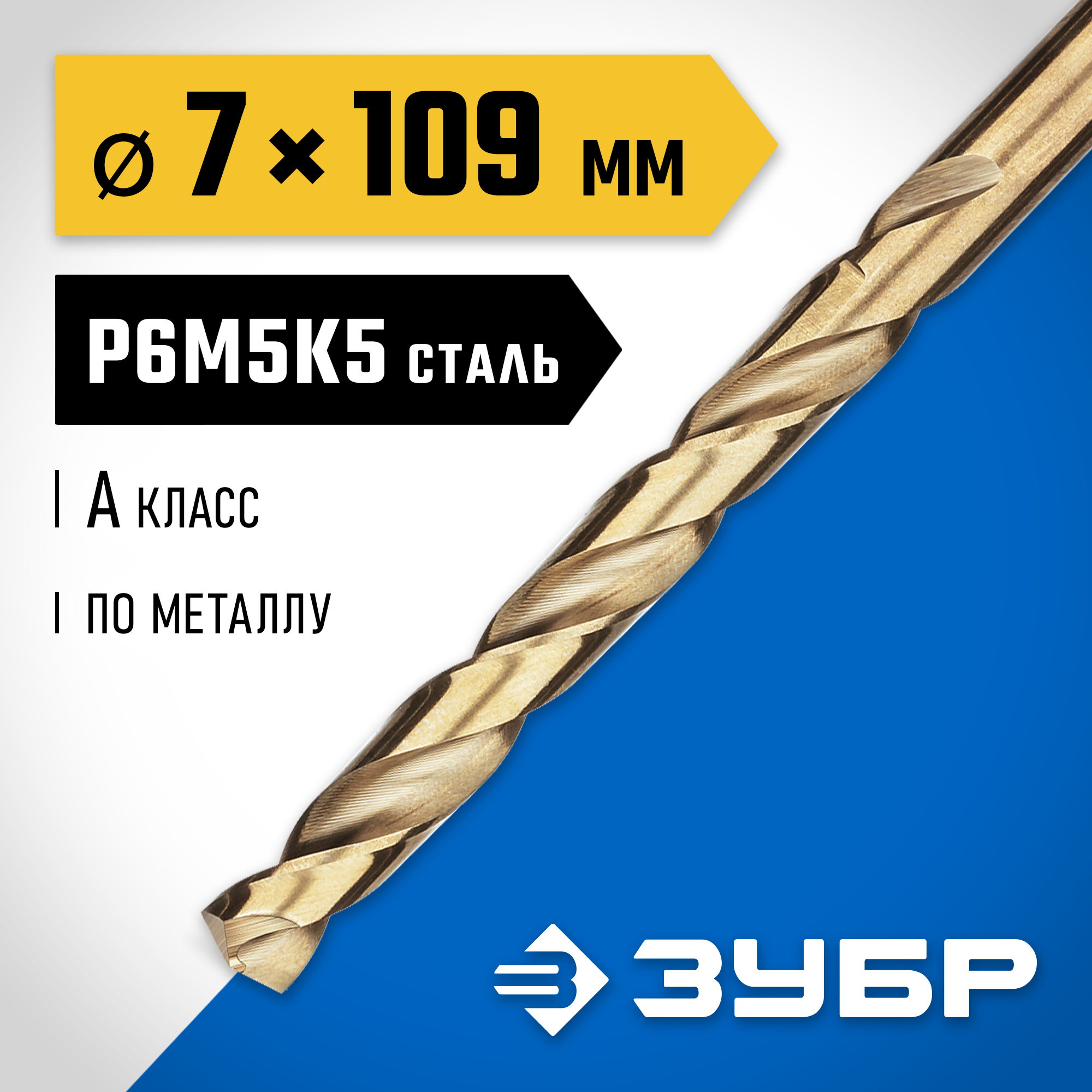 ЗУБР Кобальт, 7.0 х 109 мм, сталь Р6М5К5, класс А, сверло по металлу, Профессионал (29626-7)