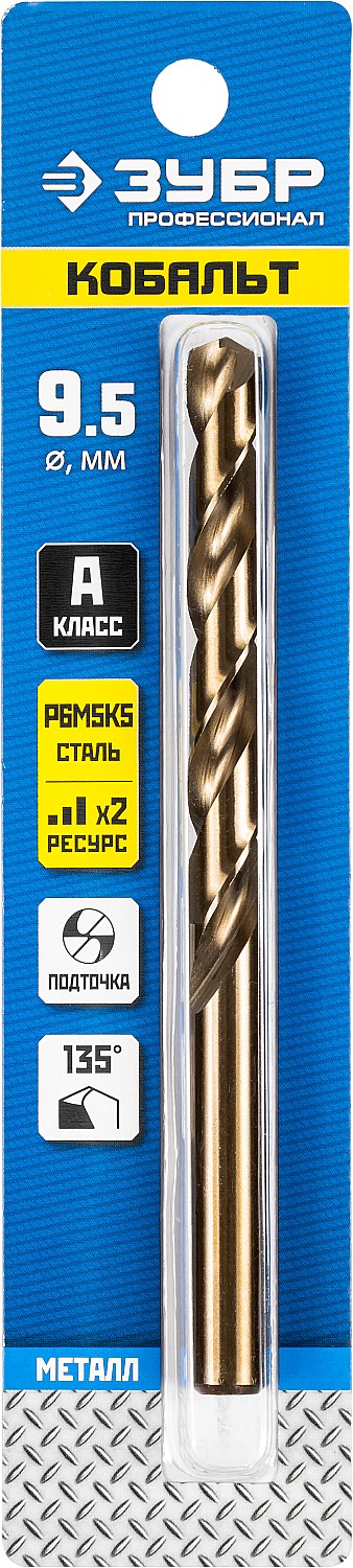 ЗУБР Кобальт, 9.5 х 133 мм, сталь Р6М5К5, класс А, сверло по металлу, Профессионал (29626-9.5)