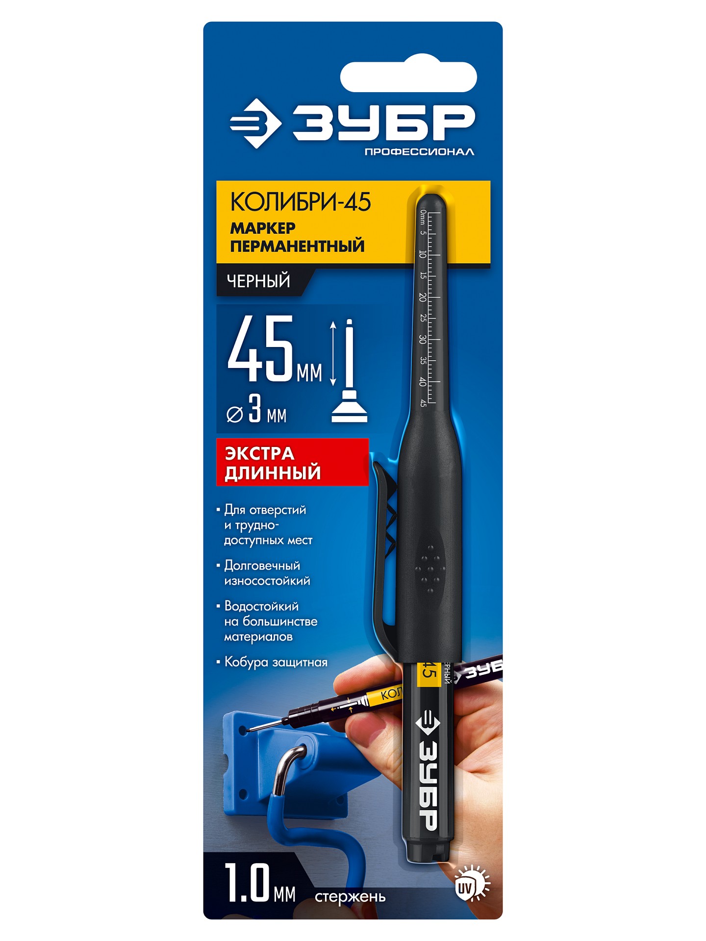 Маркер перманентный с прямым наконечником. Экстра-большой объем заливаемых чернил делает данный маркер самым долговечным среди перманентных маркеров ЗУБР. Так как перманентный маркер пишет практически на любой поверхности, он применяется в различных сферах, где требуется нанести надпись, рисунок, знак или указатель. Широкий наконечник позволяет оставить заметную издалека маркировку.