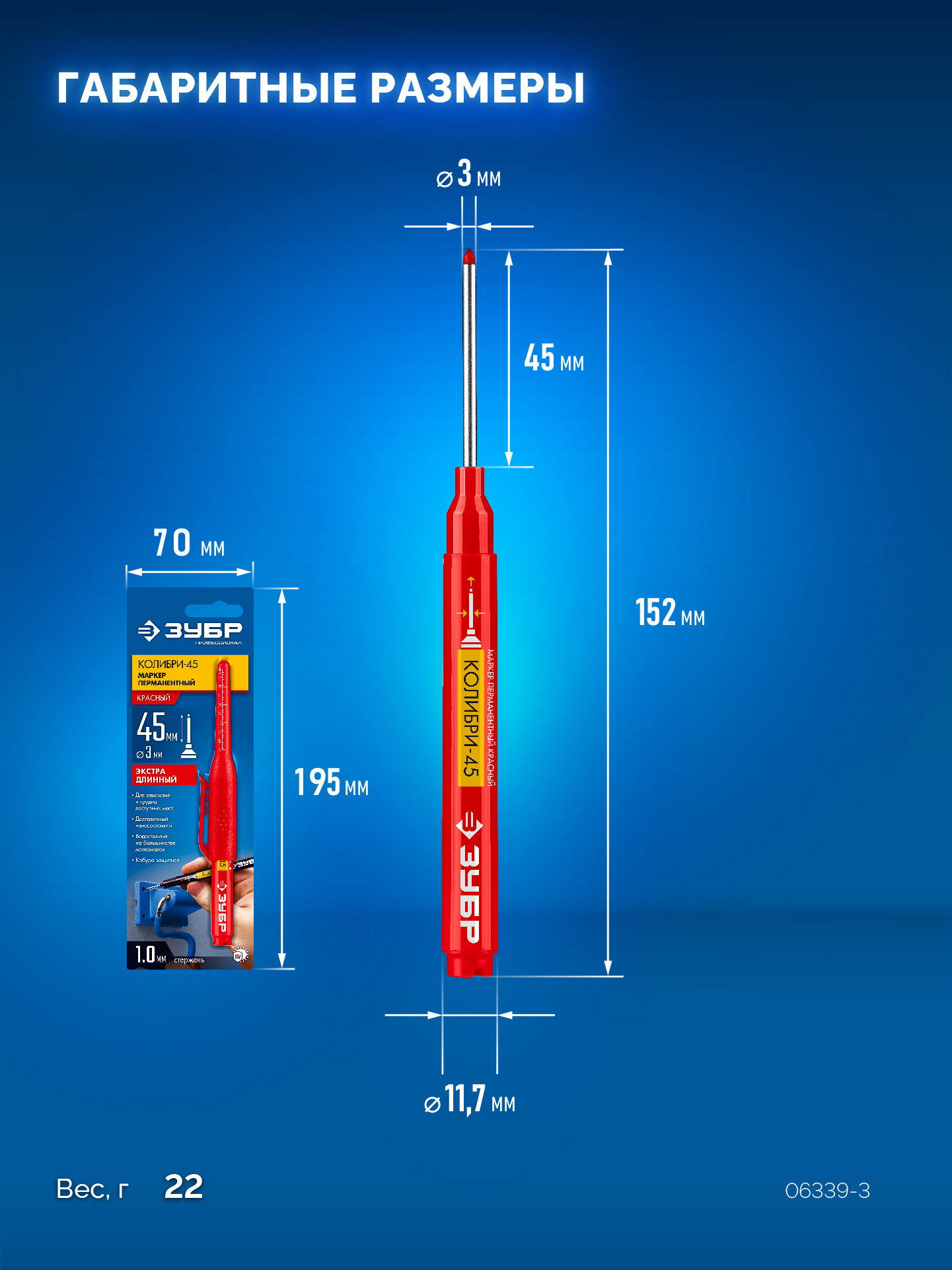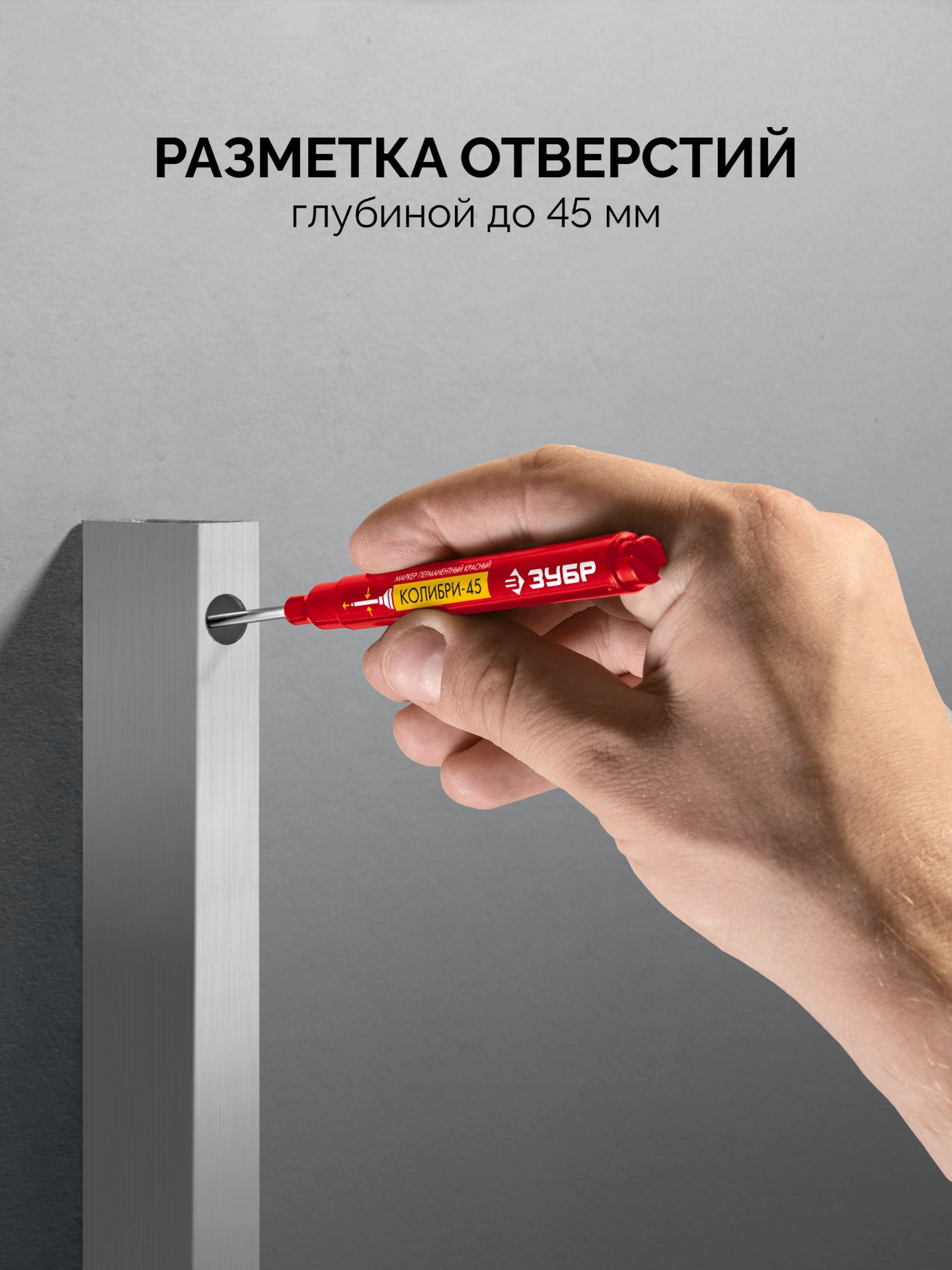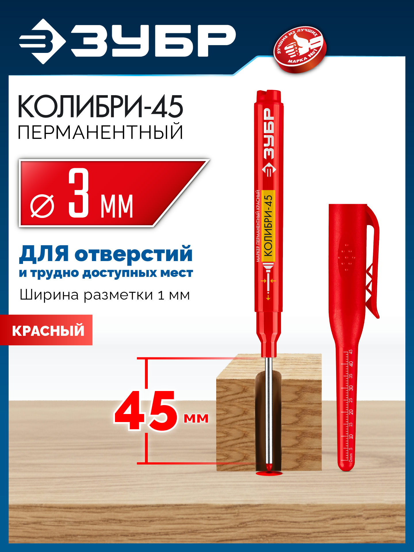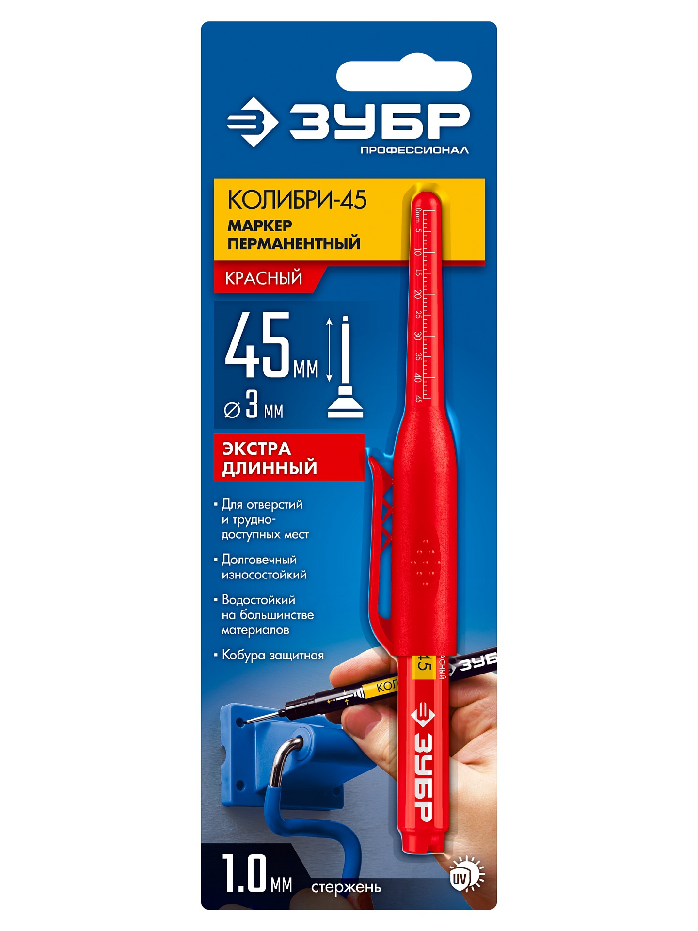 ЗУБР Колибри-45 красный, наконечник L 45 мм, ᴓ 3 мм, перманентный маркер для отверстий (06339-3)