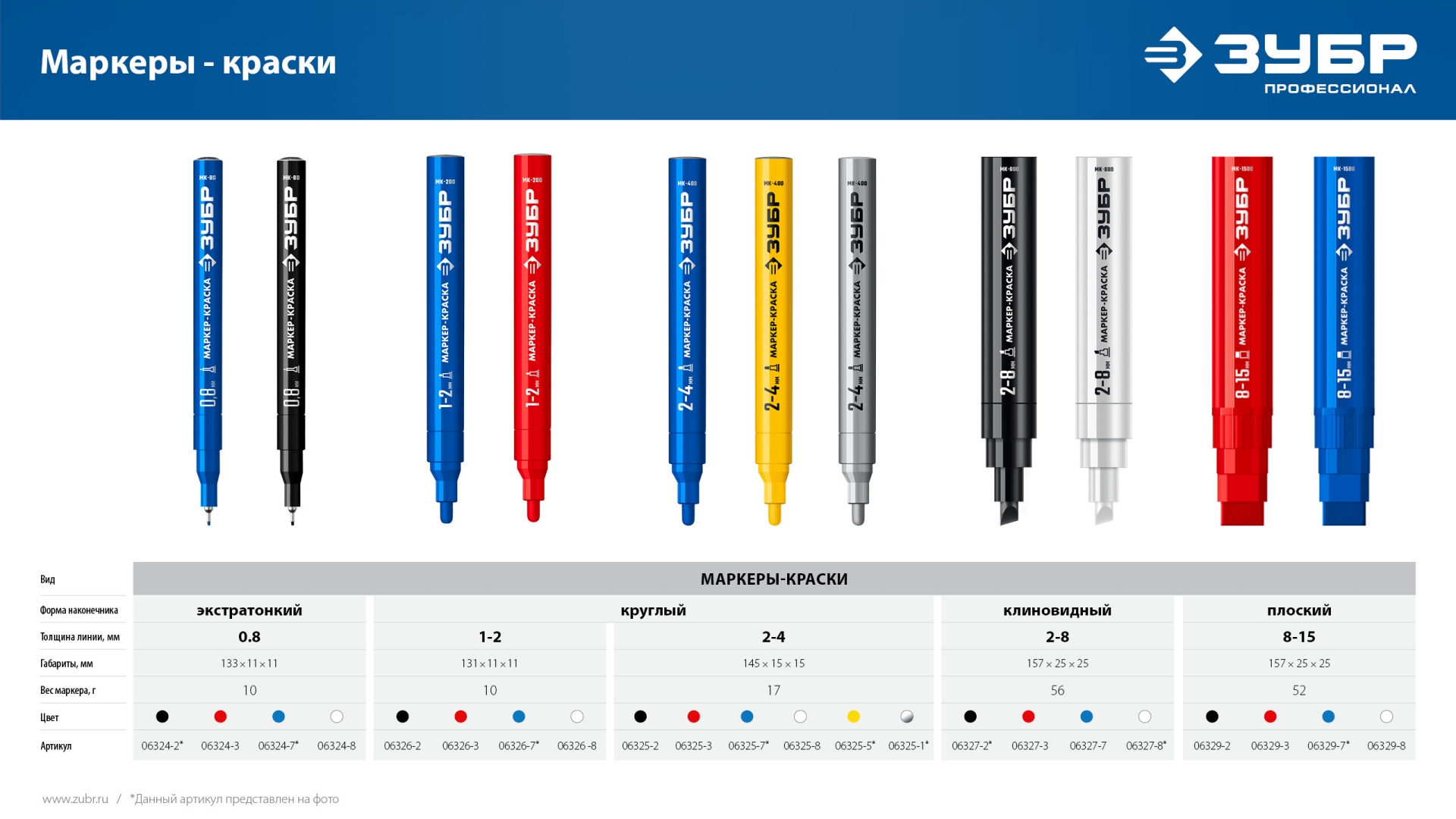 Маркер перманентный с прямым наконечником. Экстра-большой объем заливаемых чернил делает данный маркер самым долговечным среди перманентных маркеров ЗУБР. Так как перманентный маркер пишет практически на любой поверхности, он применяется в различных сферах, где требуется нанести надпись, рисунок, знак или указатель. Широкий наконечник позволяет оставить заметную издалека маркировку.
