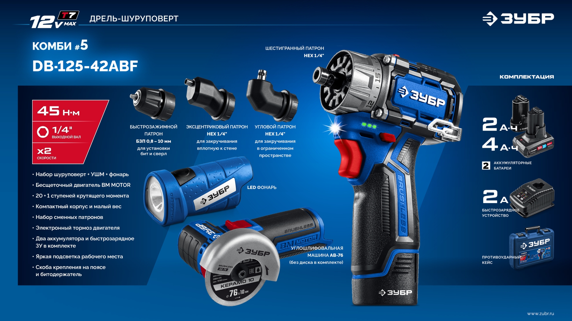 Высокотехнологичные шуруповерт и УШМ профессионального уровня с передовым BRUSHLESS двигателем. Универсальный набор компактного инструмента для монтажников со сменными патронами, емкими батареями емкостью 4.0 Ач для широкого спектра работ Комплектация с двумя аккумуляторами позволяет работать практически без остановки