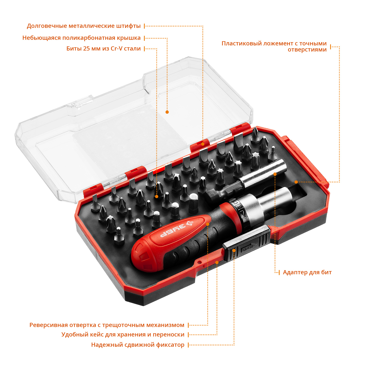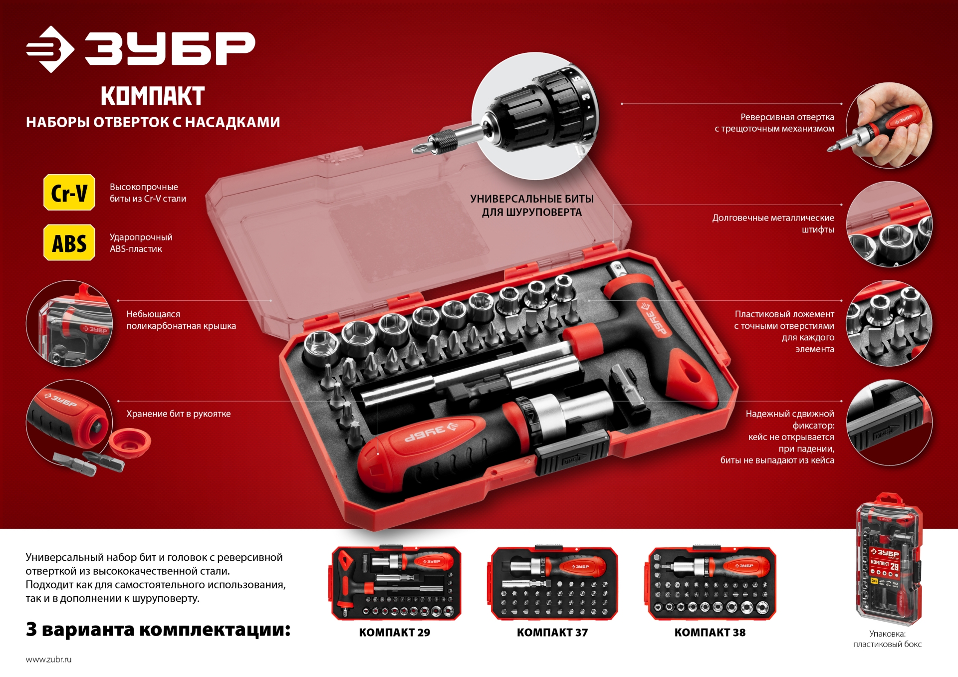 Профессиональный компактный набор с реверсивной отверткой для работы как с ручным так и с электроинструментом