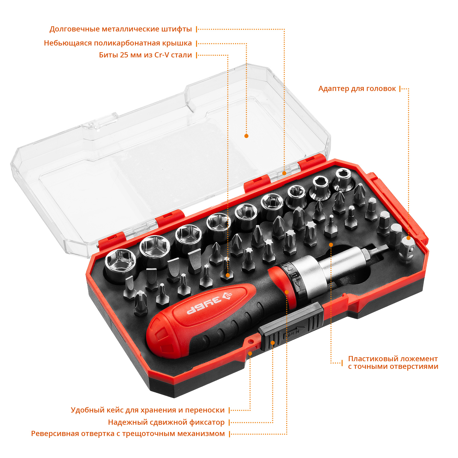 Профессиональный компактный набор с реверсивной отверткой для работы как с ручным так и с электроинструментом