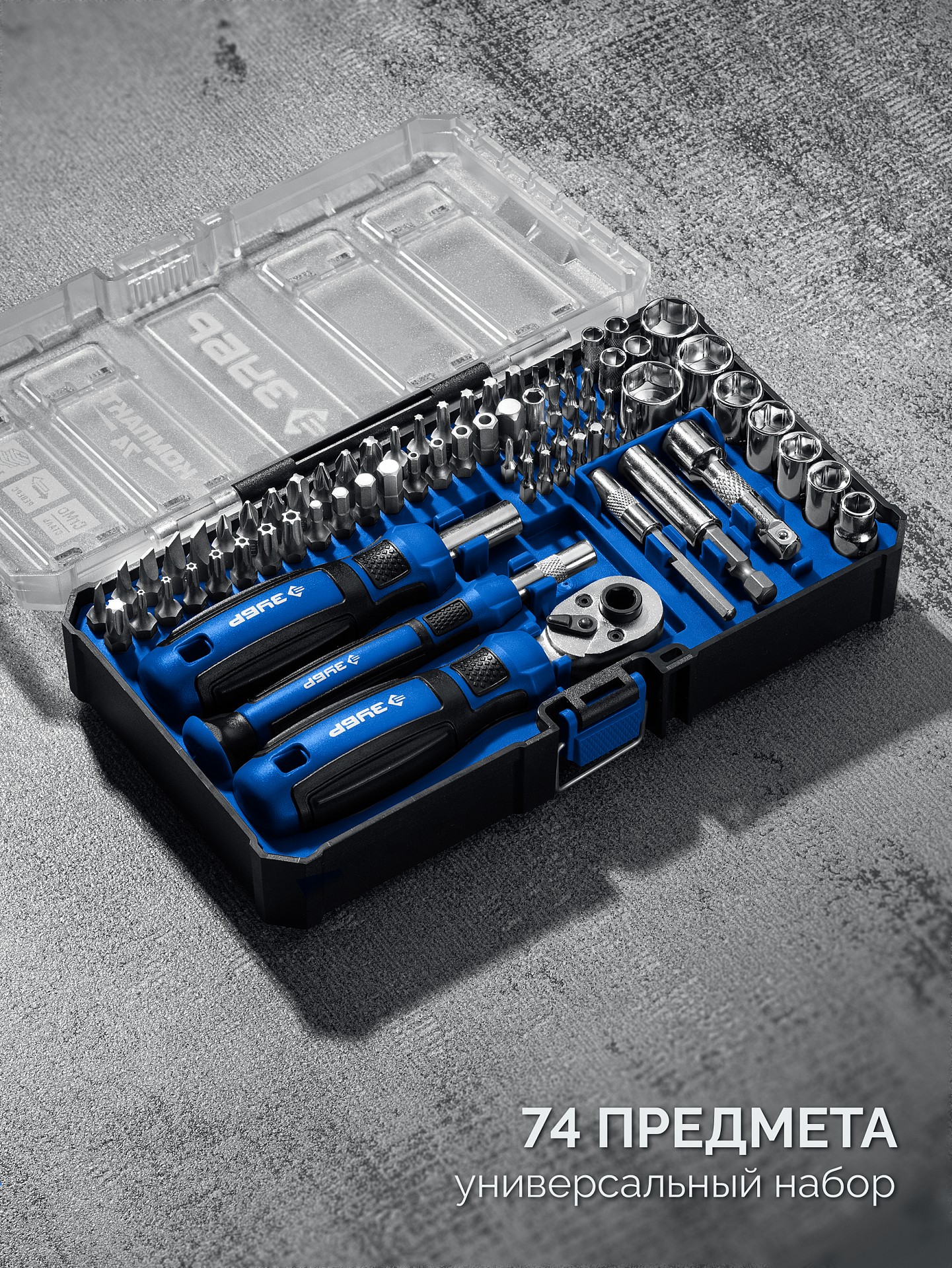 Набор бит из стали S2 и торцовых головок с реверсивной отверткой разработан для монтажа и демонтажа резьбовых соединений в соответствии с высочайшими требованиями профессионалов