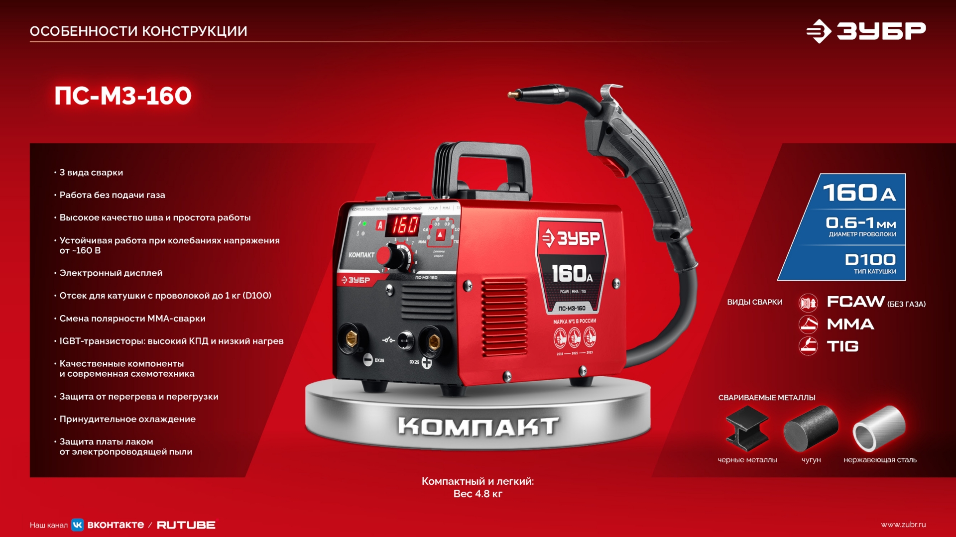 - сварка различных металлов - Универсальный сварочный полуавтомат инверторного типа предназначен для FCAW (сварка самозащитной порошковой проволокой без использования защитного газа), MMA (сварка штучными электродами) и TIG (сварка неплавящимся электродом в среде инертных газов)