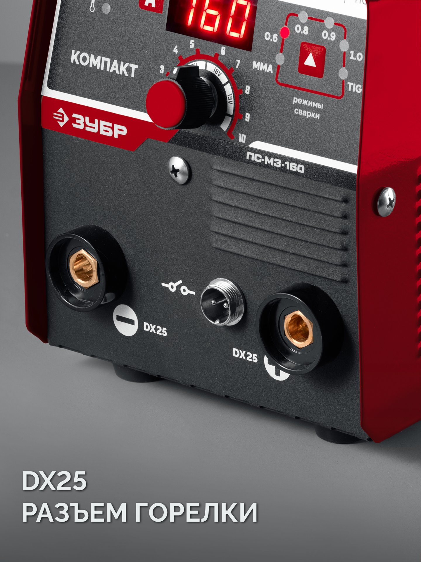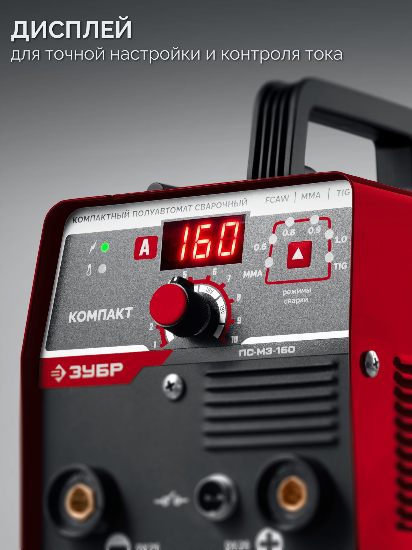 - Электронный дисплей наглядно и точно показывает сварочный ток для контроля процесса сварки