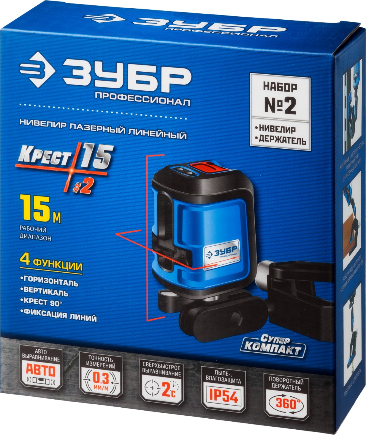 ЗУБР Крест 15, 15 м, лазерный нивелир, Профессионал (34902-2)
