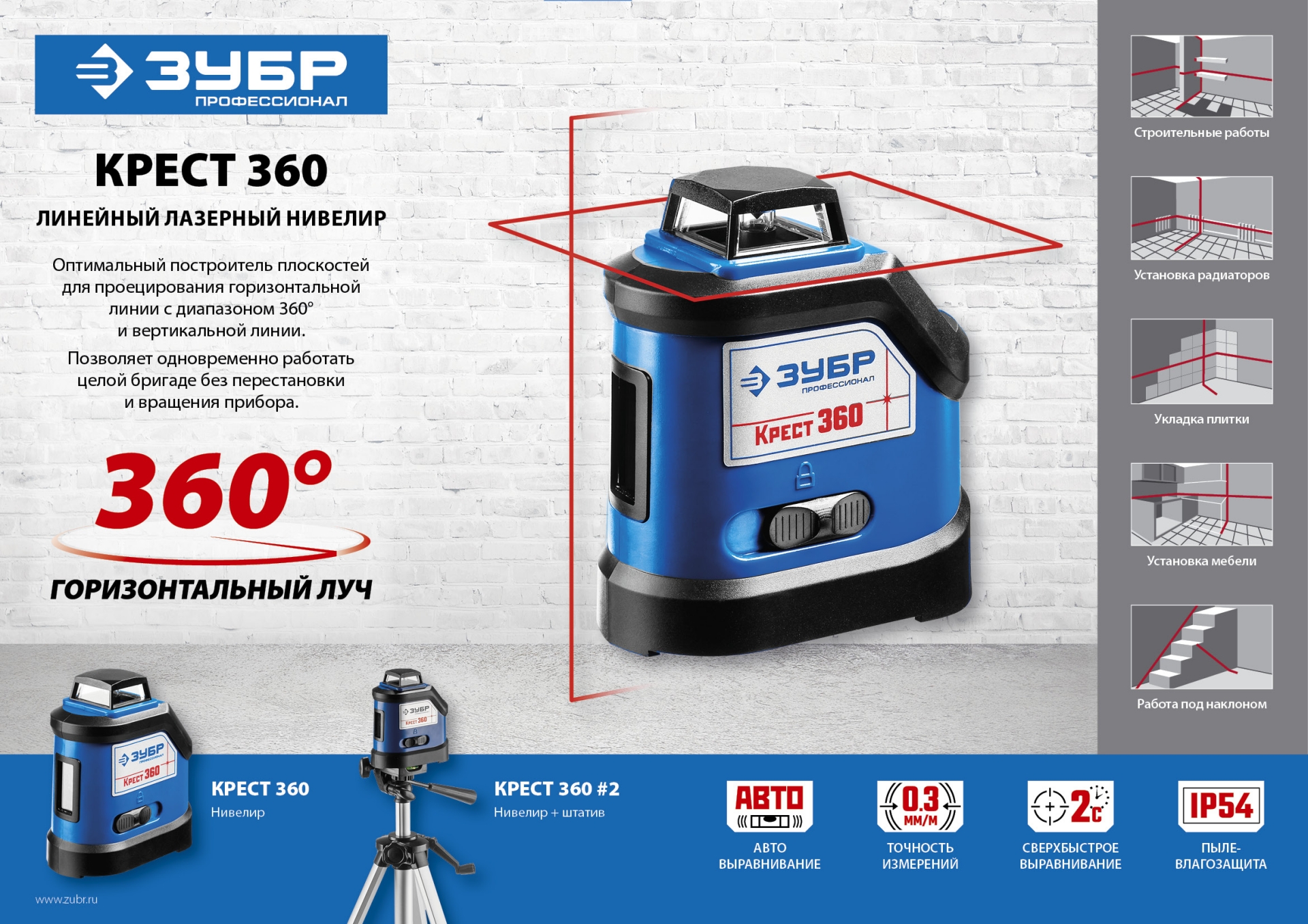 - Функция самовыравнивания устраняет необходимость настройки, гарантирует максимальную точность при разметке.