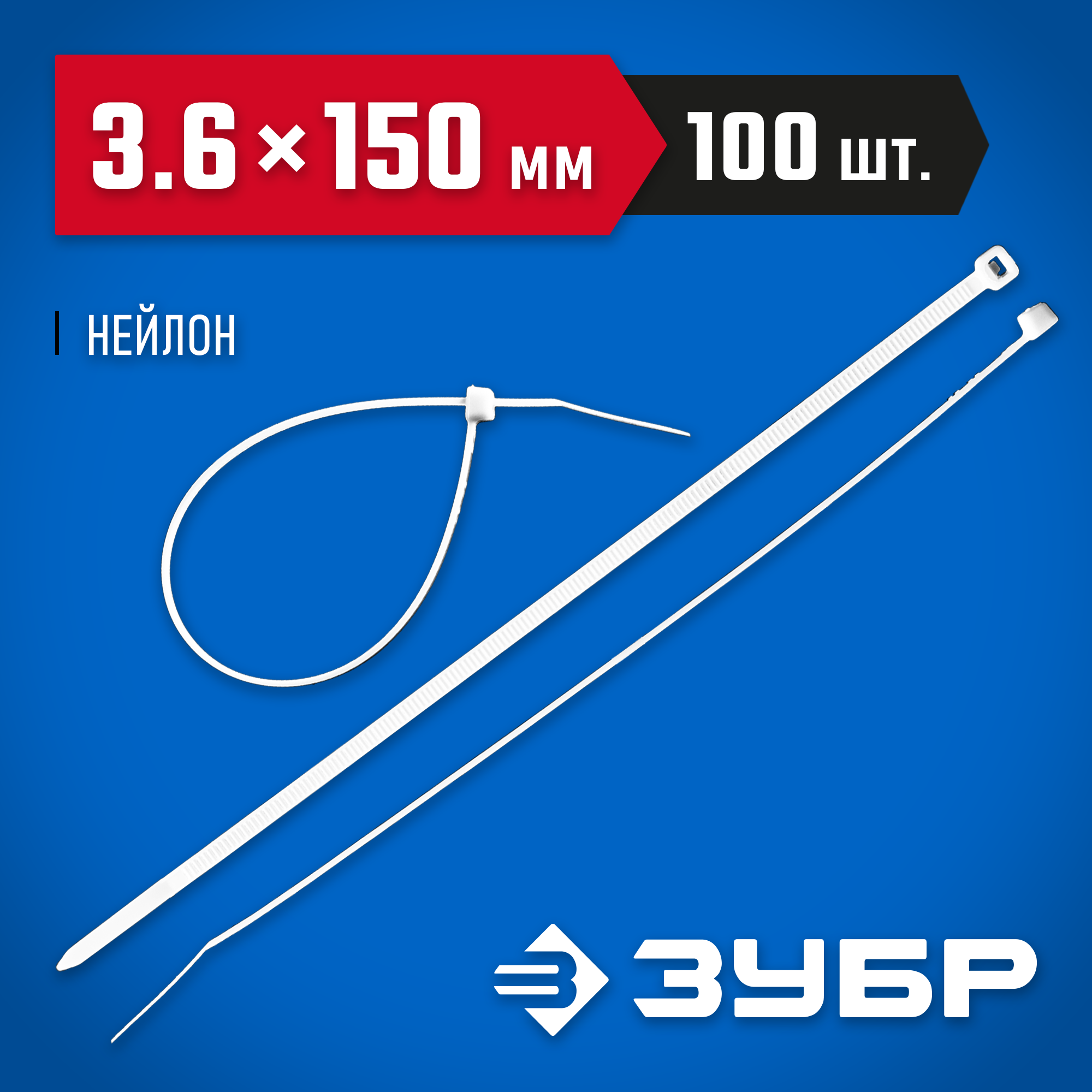 ЗУБР КС-Б1, 3.6 x 150 мм, нейлон РА66, 100 шт, белые, кабельные стяжки, Профессионал (309010-36-150)