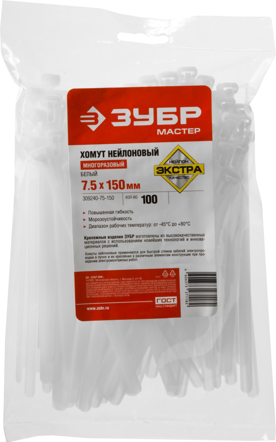 - Диапазон рабочих температур от -35°С до +80°С допускает использование стяжек в самых разнообразных условиях. Монтаж должен производится при температуре от -0°С до +60°С
