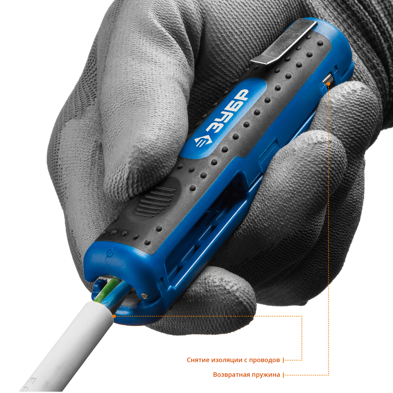 Съёмник изоляции многофункциональный ЗУБР изготовлен из высококачественной стали с закалкой рабочих поверхностей, предназначен для профессионального применения. Обладает повышенным ресурсом, обеспечивает высокое качество электромонтажных работ.