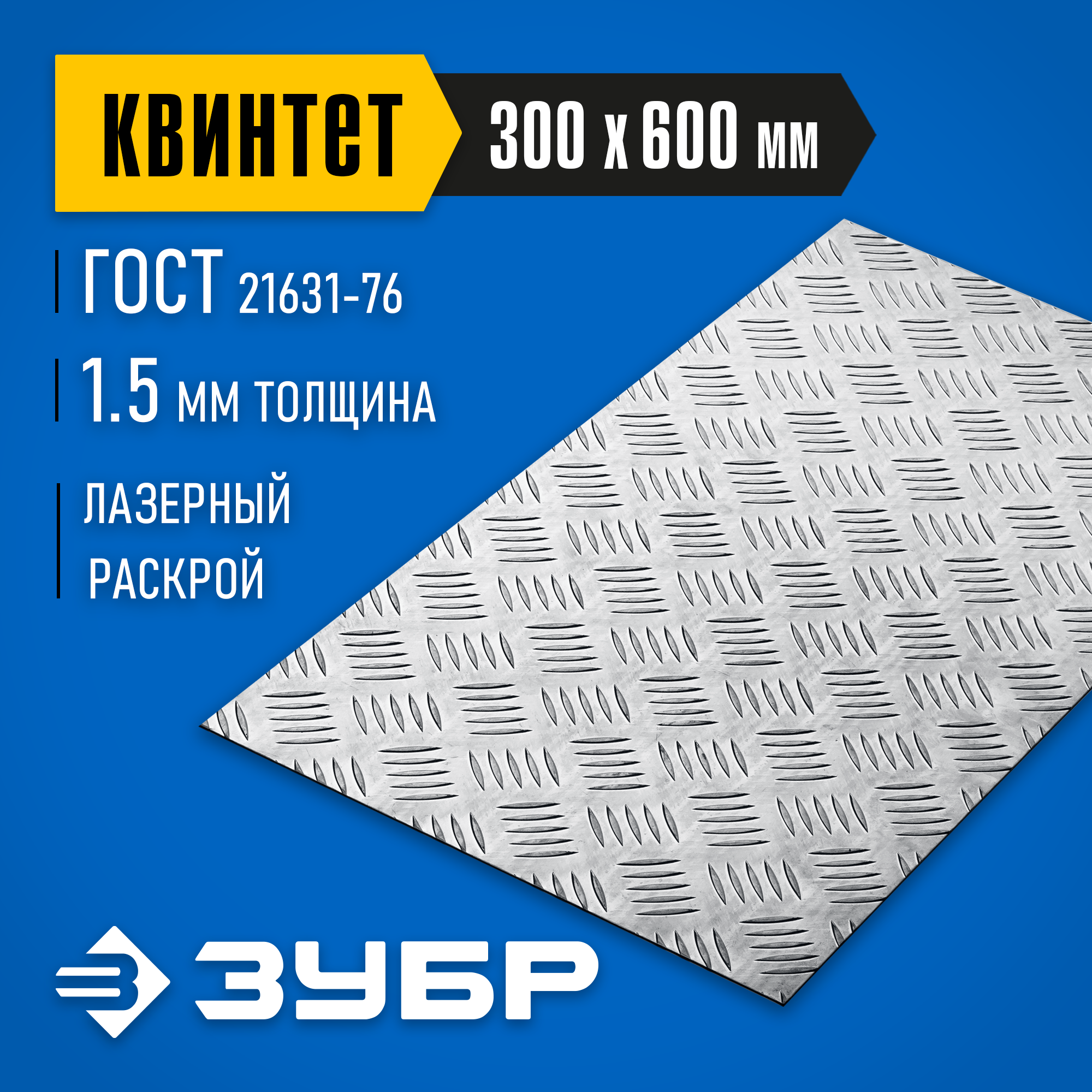 ЗУБР Квинтет, 300 х 600 х 1.5 мм, алюминиевый рифленый лист, Профессионал (53833)