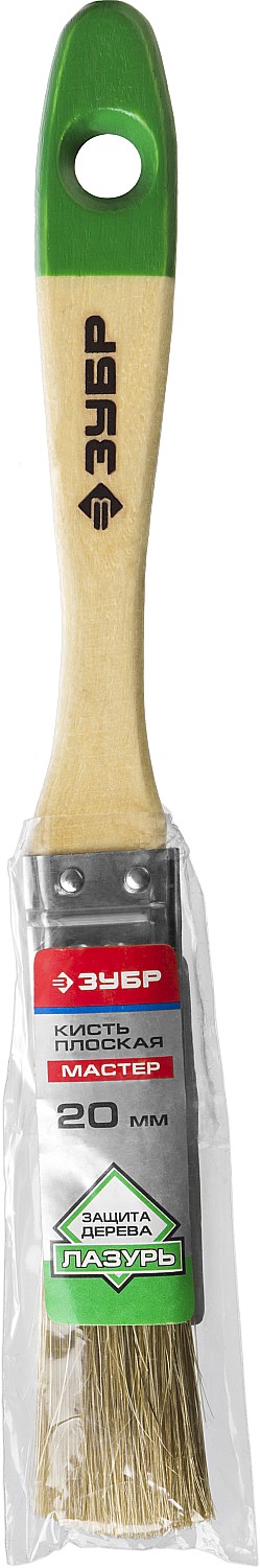 ЗУБР ЛАЗУРЬ, 20 мм, 3/4″, светлая смешанная щетина, деревянная ручка, для высокотекучих ЛКМ, плоская кисть (4-01009-020)