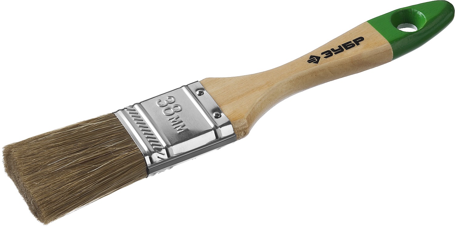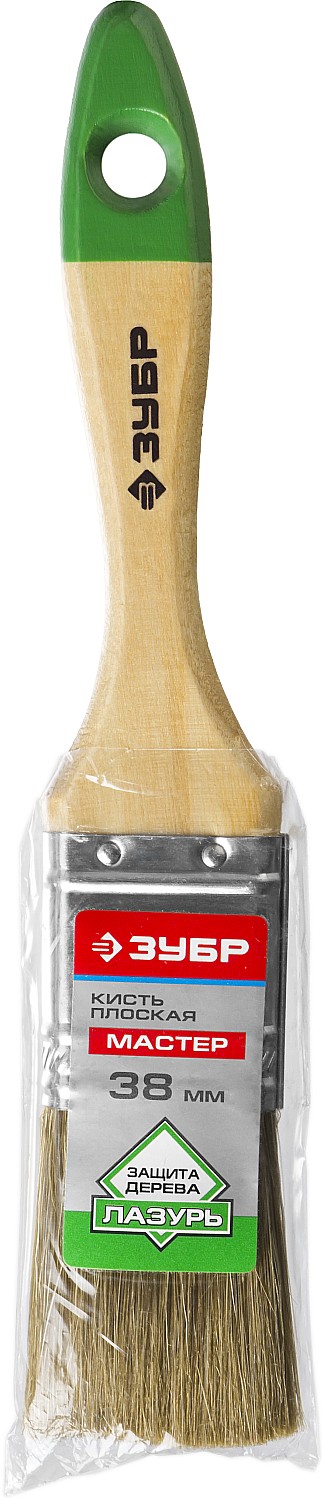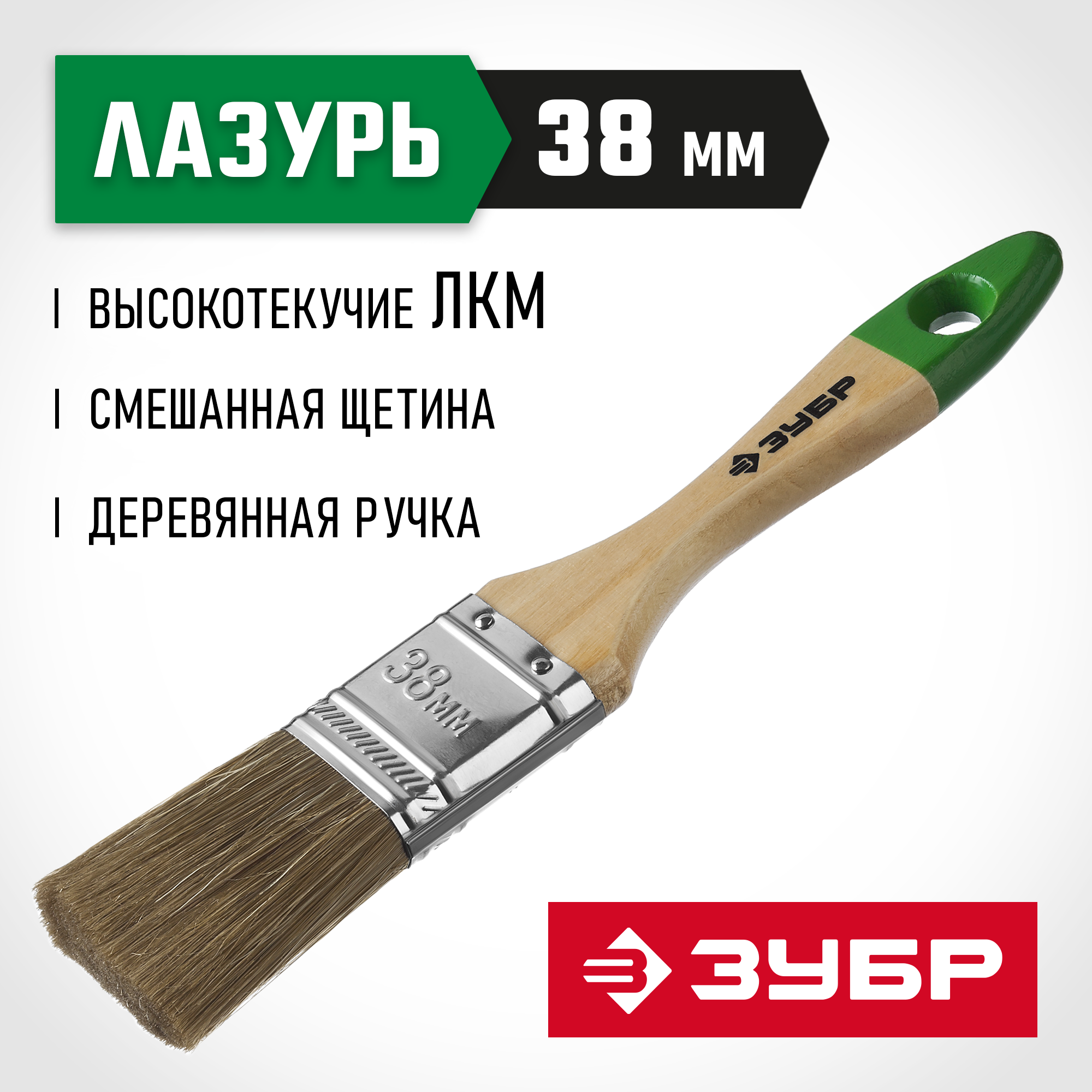 ЗУБР ЛАЗУРЬ, 38 мм, 1.5″, светлая смешанная щетина, деревянная ручка, для высокотекучих ЛКМ, плоская кисть (4-01009-038)
