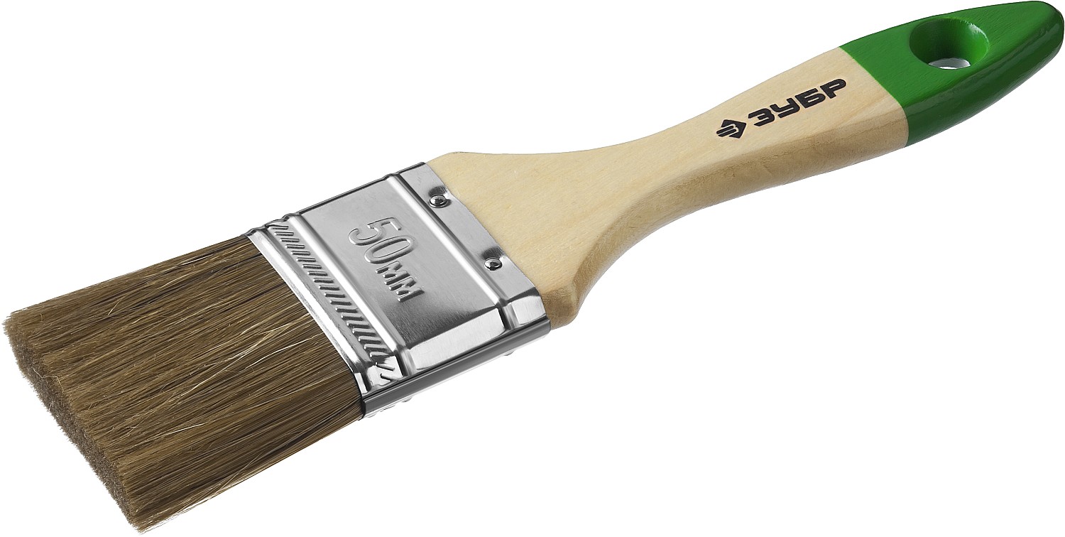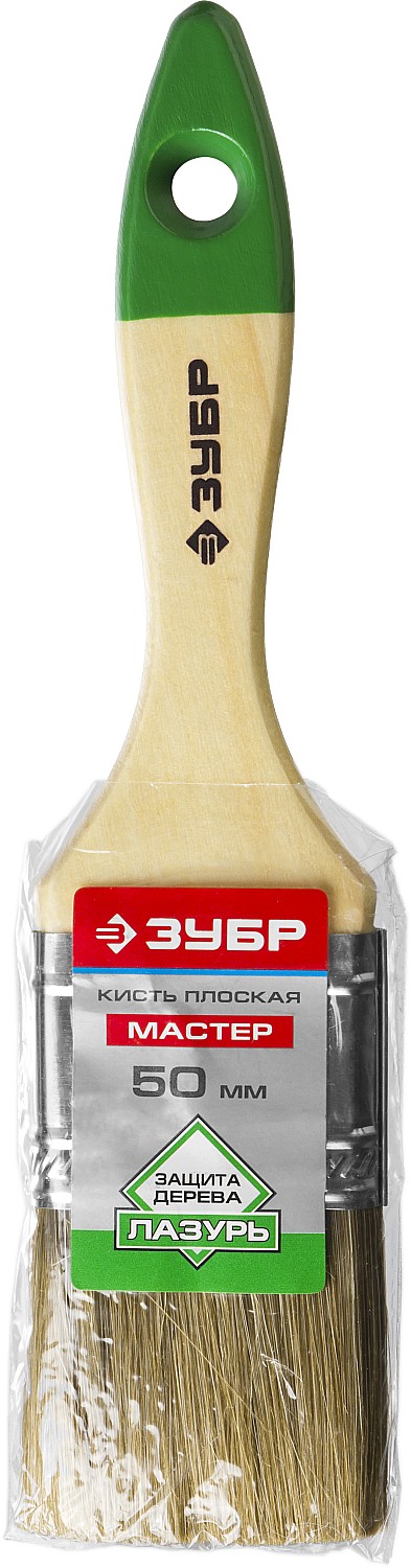 ЗУБР ЛАЗУРЬ, 50 мм, 2″, светлая смешанная щетина, деревянная ручка, для высокотекучих ЛКМ, плоская кисть (4-01009-050)