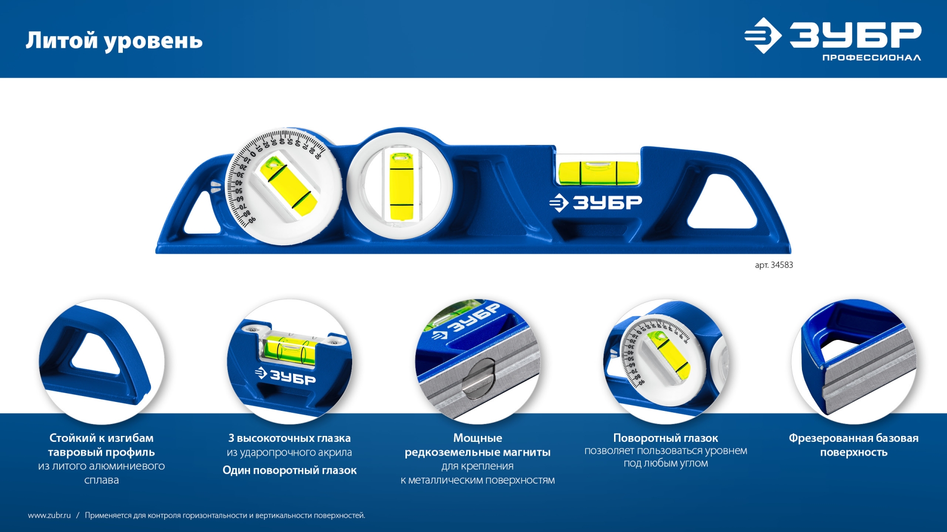 Литой профессиональный уровень с особомощными магнитами, фрезерованной базовой поверхностью и высокоточными глазками