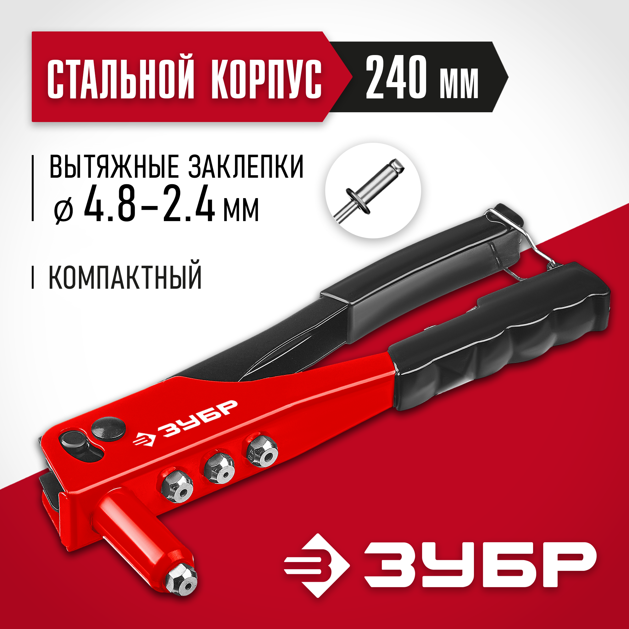 Для установки алюминиевых вытяжных заклепок. Способ применения: 1. Просверлите отверстие 2. Установите заклепку в заклепочник 3. Сжимайте рукоятки заклепочника до момента откусывания хвостовика заклепки 4. Заклепка установлена