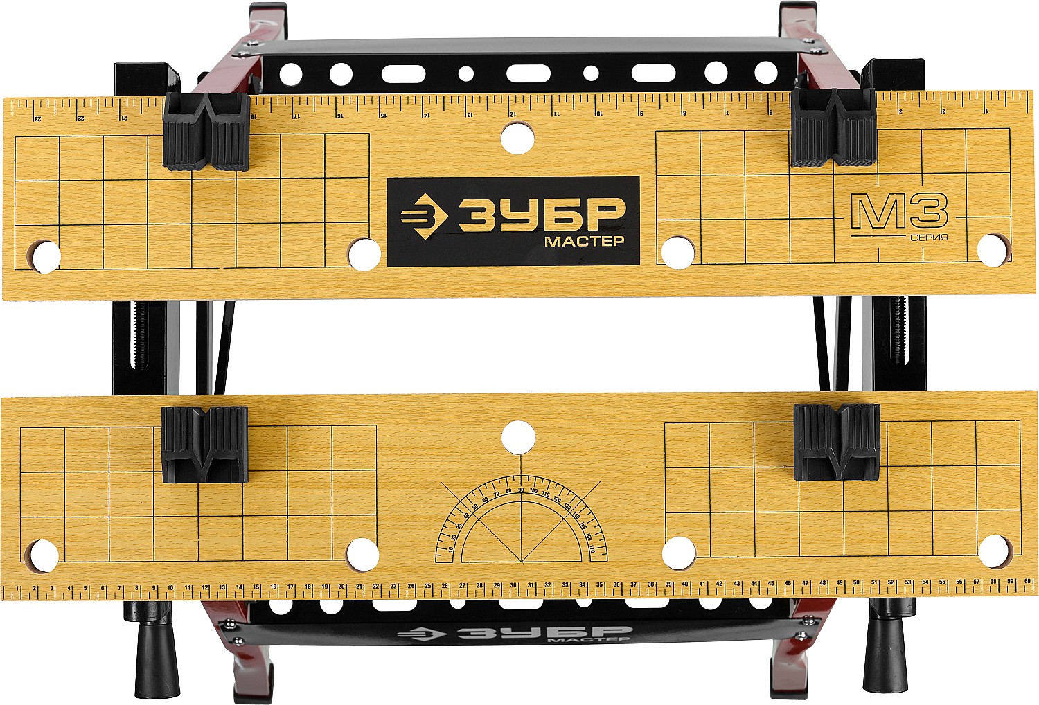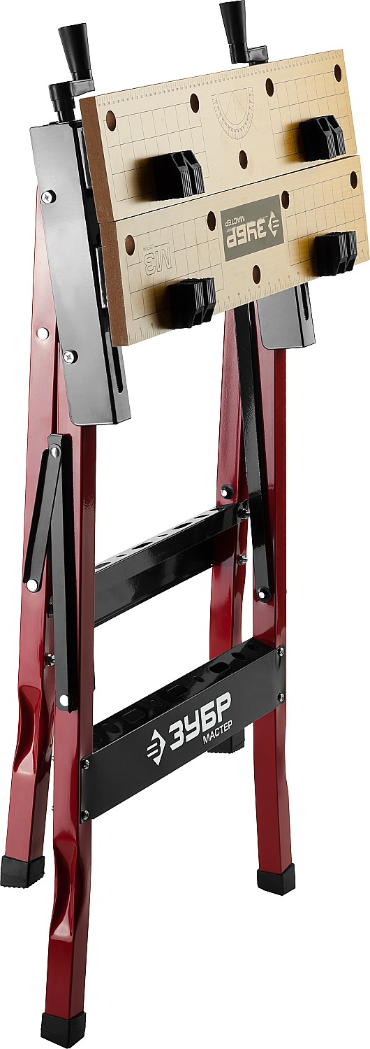 Незаменимый помощник в мастерской, в гараже и в домашних условиях. Предназначен для проведения столярных работ. Благодаря складному каркасу удобен в хранении и транспортировке. Столешница состоит из статической и подвижной части, фиксируемой двумя вращающимися ручками. Для удобства в работе столешница оснащена отверстиями и фиксаторами заготовок любой формы.