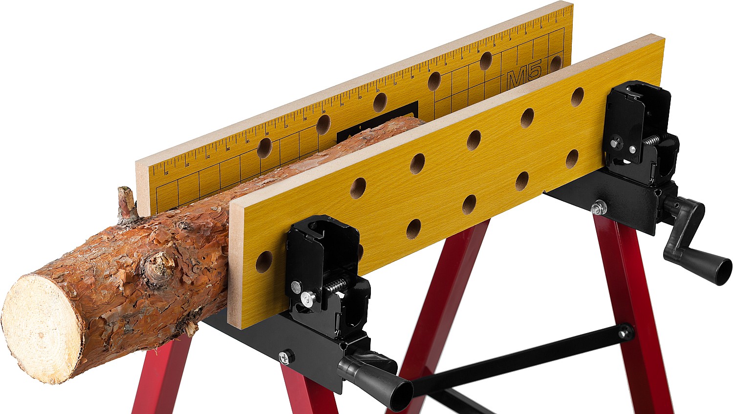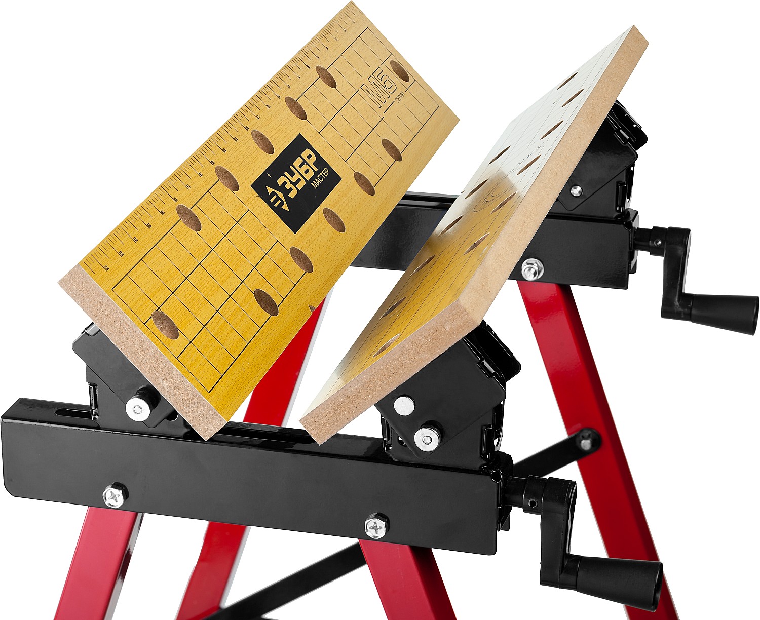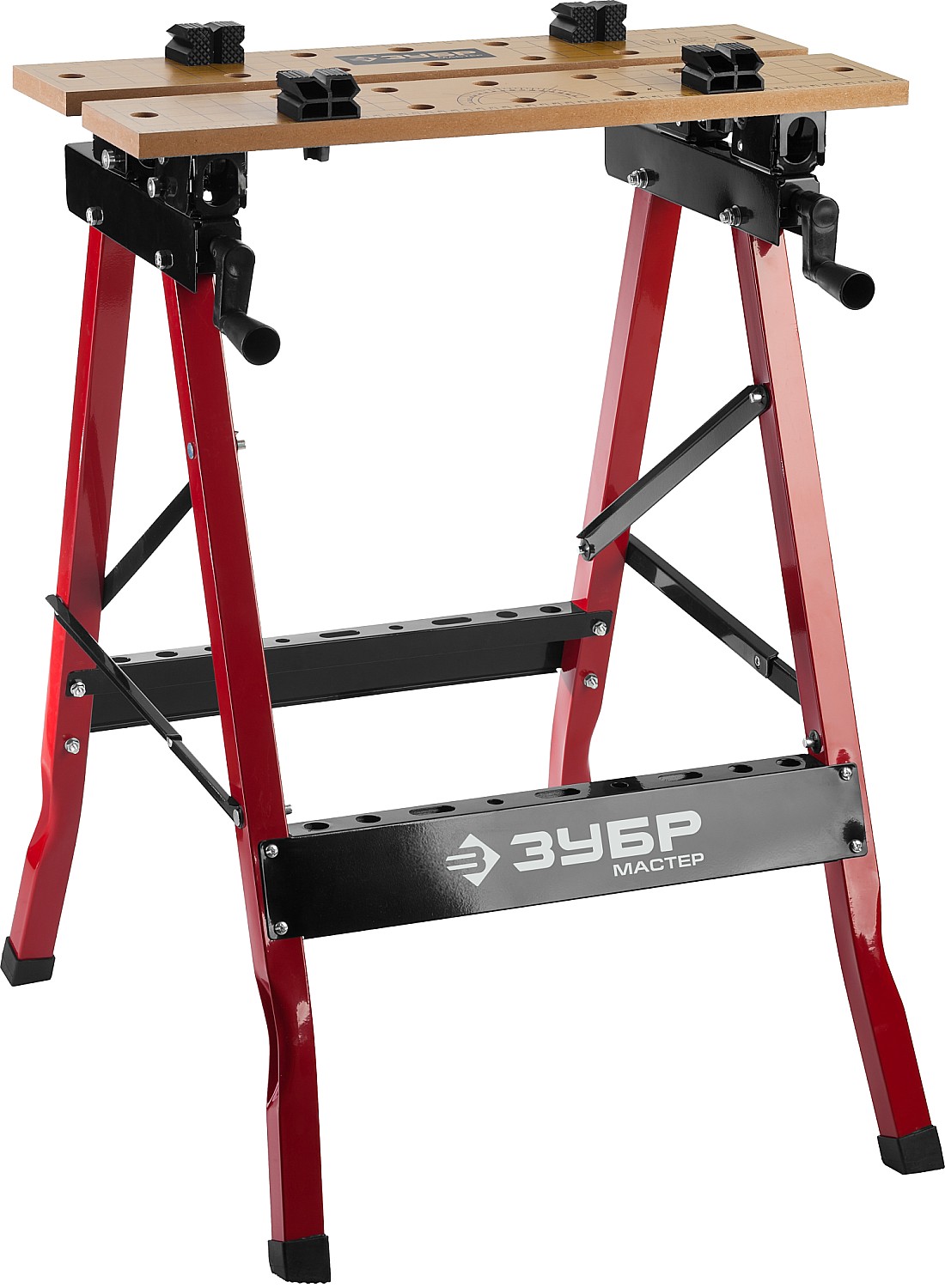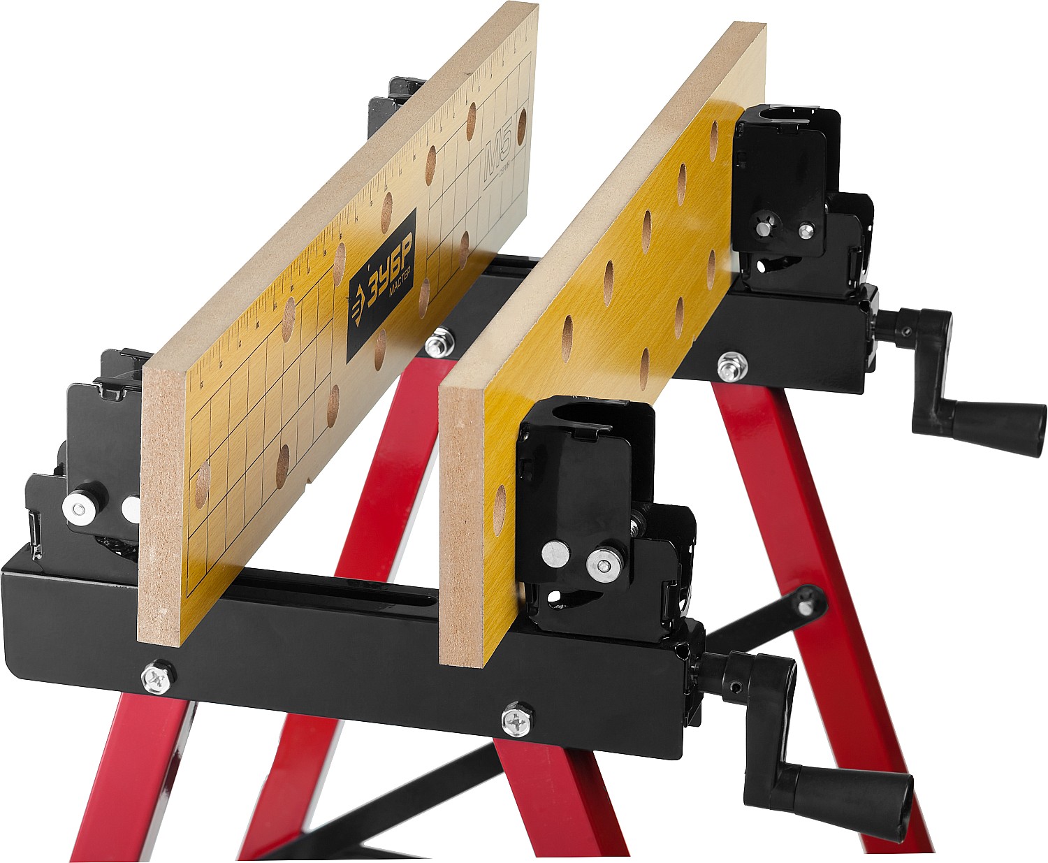 Незаменимый помощник в мастерской, в гараже и в домашних условиях. Предназначен для проведения столярных работ. Благодаря складному каркасу удобен в хранении и транспортировке. Столешница состоит из статической и подвижной части, фиксируемой двумя вращающимися ручками. Для удобства в работе столешница оснащена отверстиями и фиксаторами заготовок любой формы.