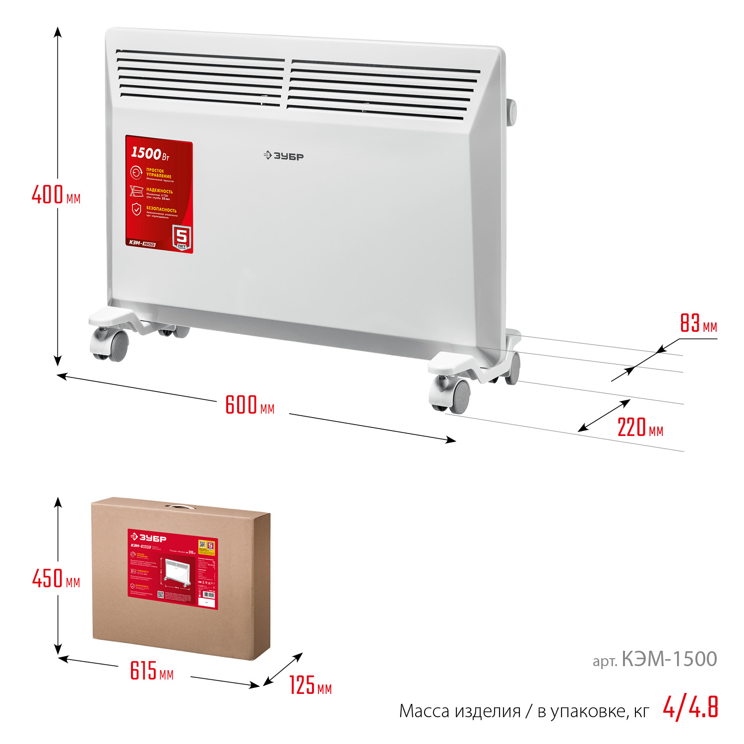 Электрический конвектор ЗУБР мощностью 1500 Вт - подойдет для обогрева любых домашних и офисных помещений, включая ванные комнаты, площадью до 20 м2. Сделано в России