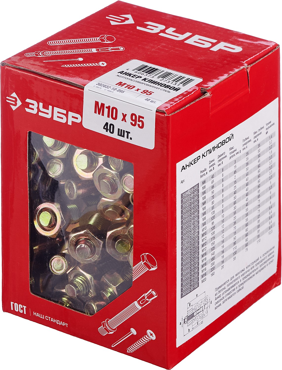 ЗУБР М10 х 95 мм, 40 шт, клиновой анкер (302032-10-095)