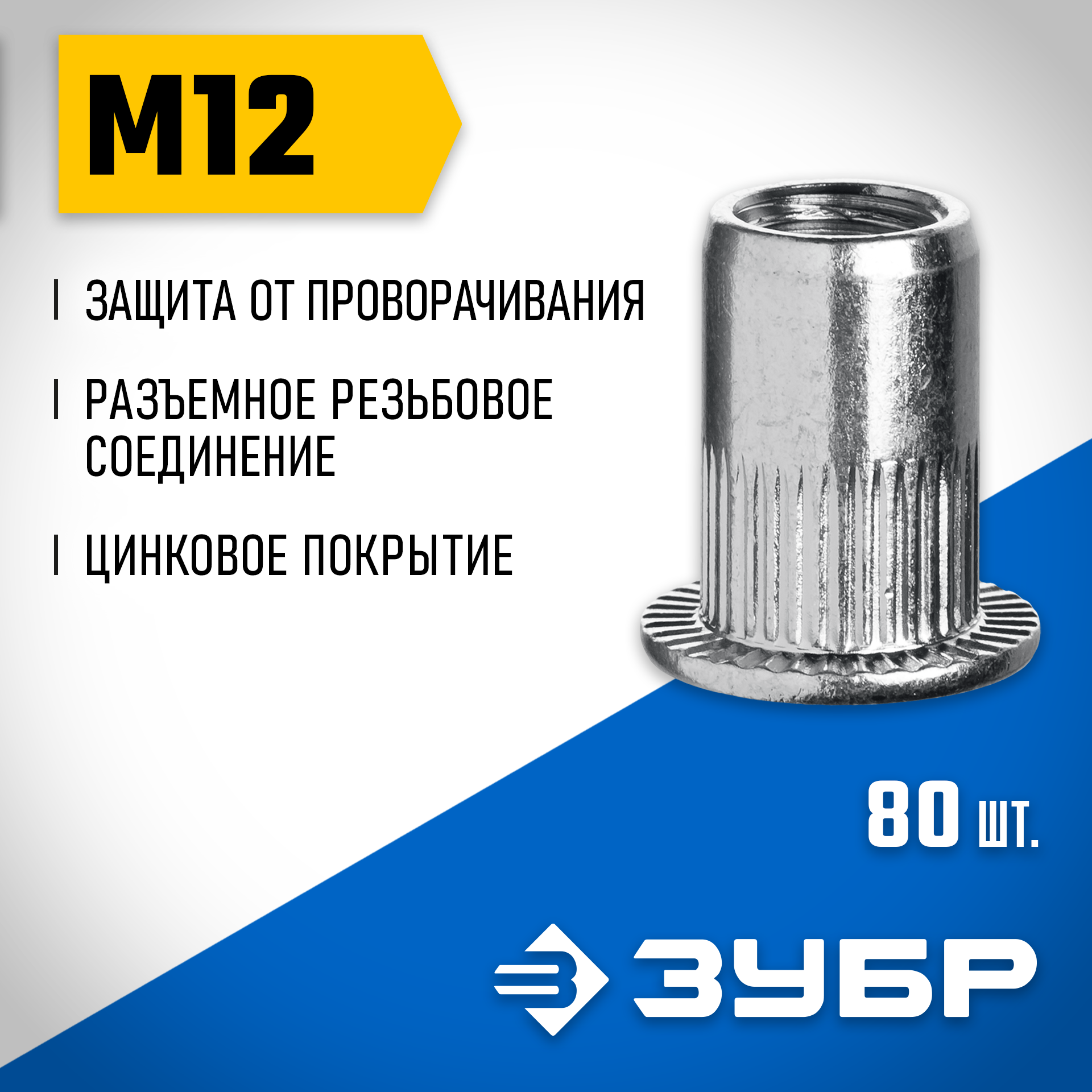 ЗУБР М12, станд. бортик, 80 шт, стальные резьбовые заклепки с насечками, Профессионал (31317-12)