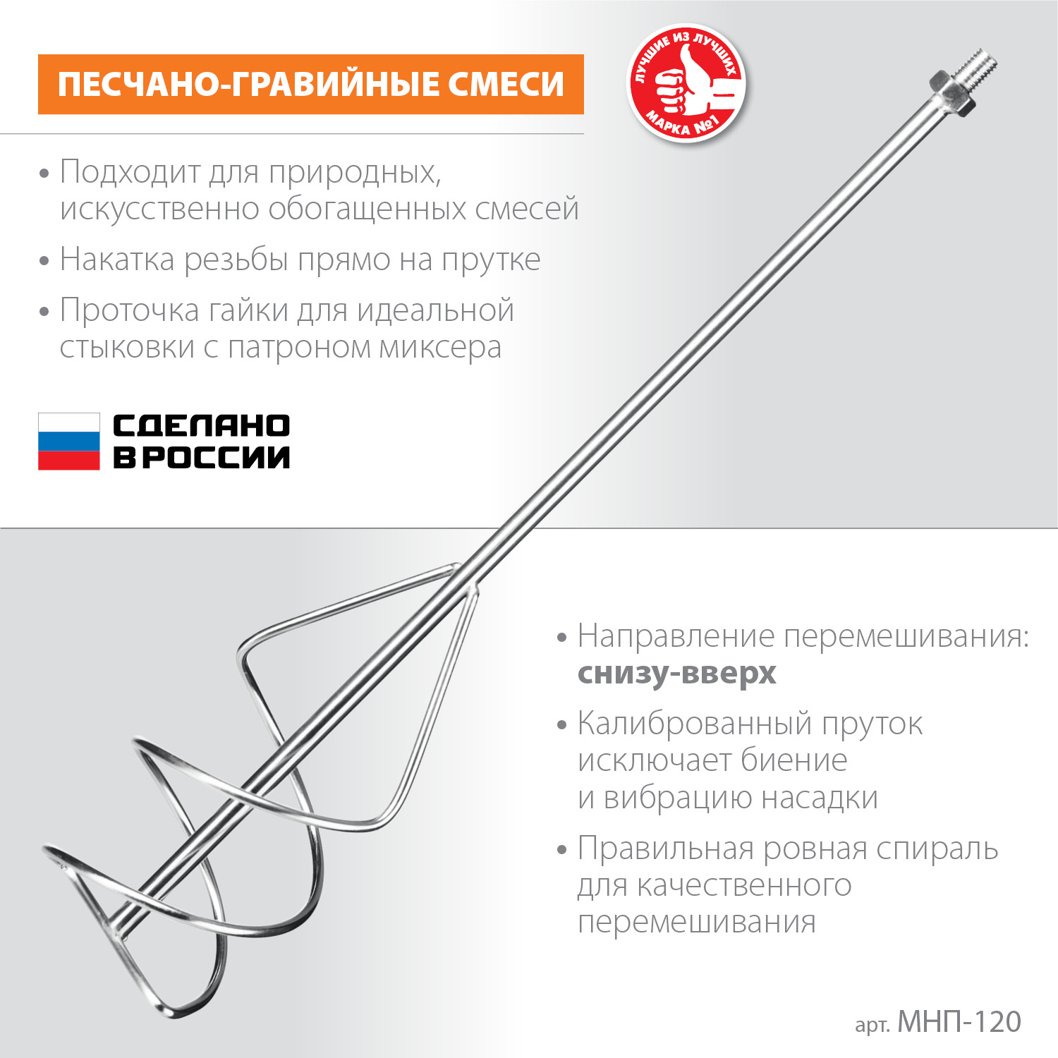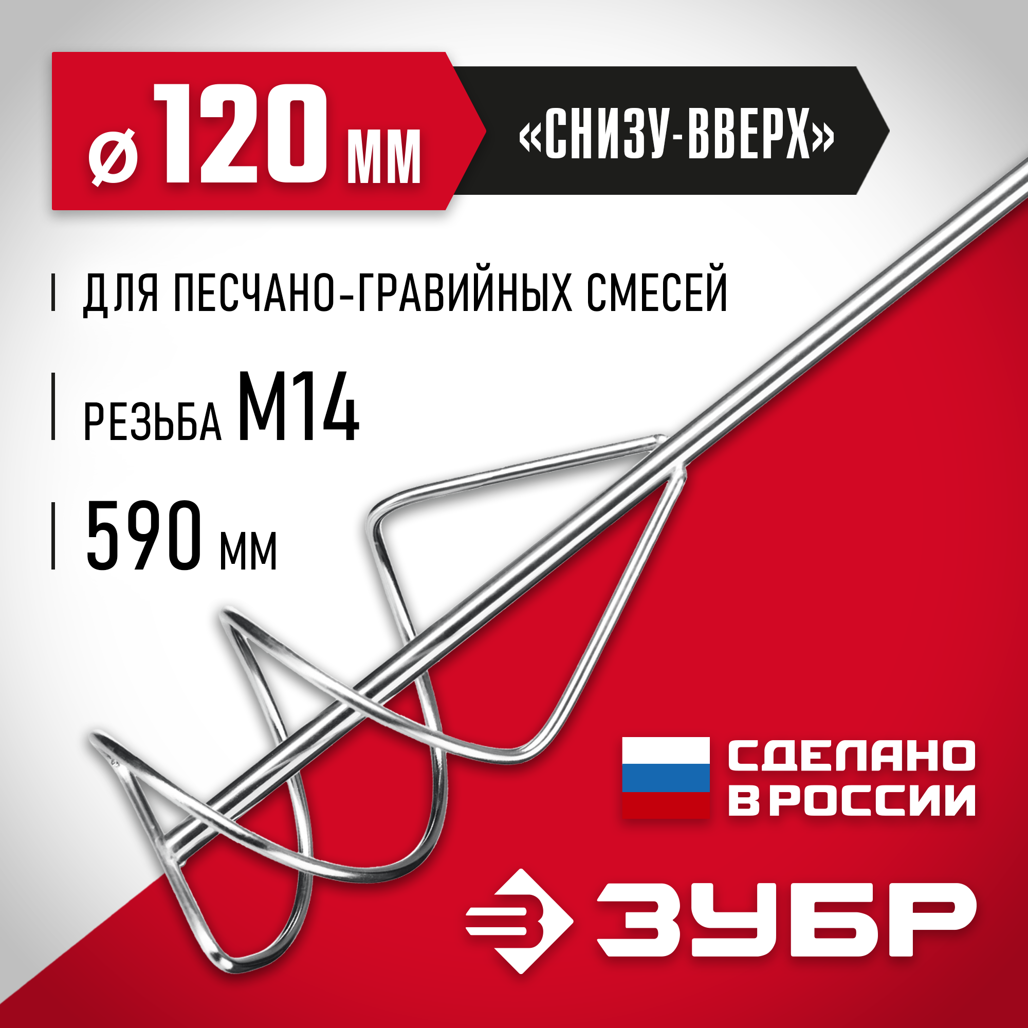 Насадка с лопастями для перемешивания песчано-гравийных смесей. Используется совместно с ручными миксерами ЗУБР ЗМР-1200Э-1, МР-1050-1, МР-1100, МР-1400-2 и МР-1600-2. Сделано в России