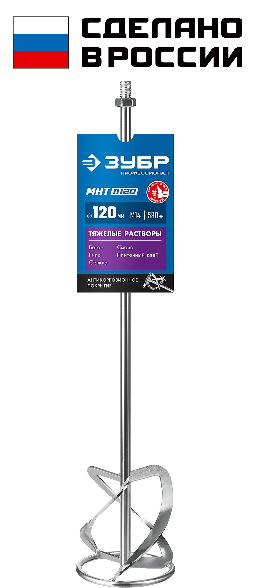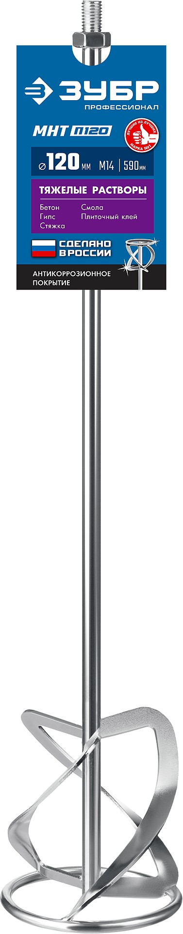 Насадка с лопастями для перемешивания тяжелых растворов (бетон, гипс, стяжка, смола, плиточный клей, известково-глиняный раствор). Используется совместно с ручными миксерами ЗУБР ЗМР-1200Э-1, МР-1050-1, МР-1100, МР-1400-2 и МР-1600-2. Не поддается коррозии и не деформируется даже при эксплуатации в тяжелых условиях. Сделано в России