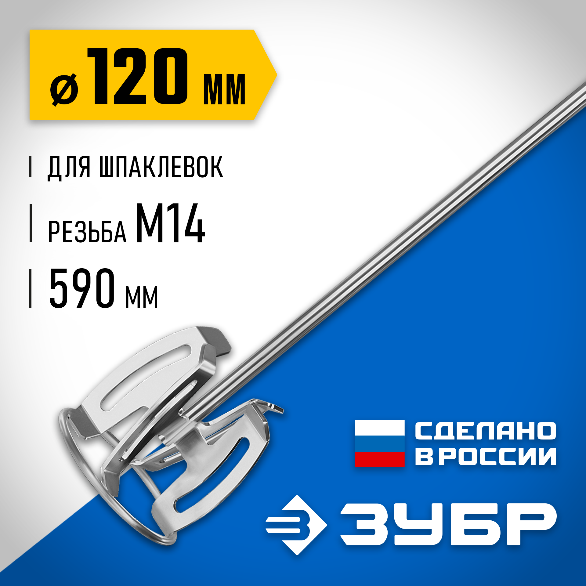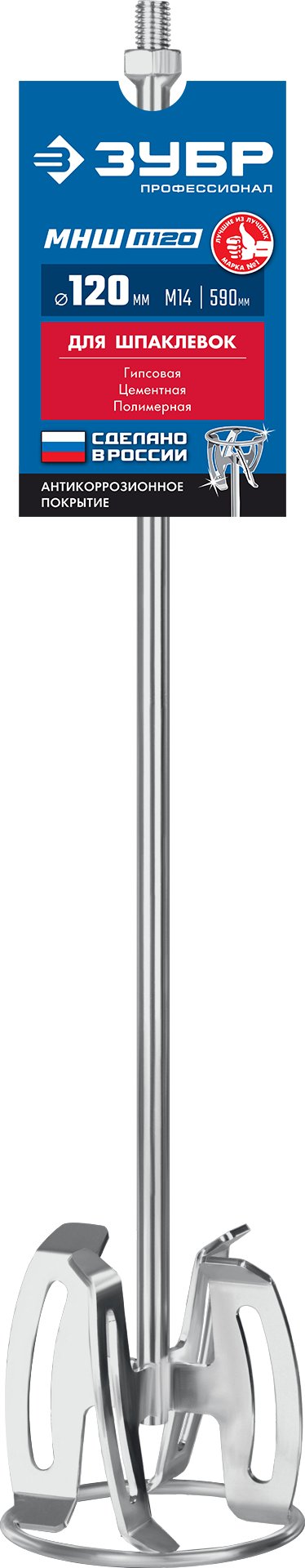 Насадка с лопастями для перемешивания шпаклевок. Используется совместно с ручными миксерами ЗУБР МР-1050-1, МР-1100, МР-1400-2 и МР-1600-2. Не поддается коррозии и не деформируется даже при эксплуатации в тяжелых условиях. Сделано в России