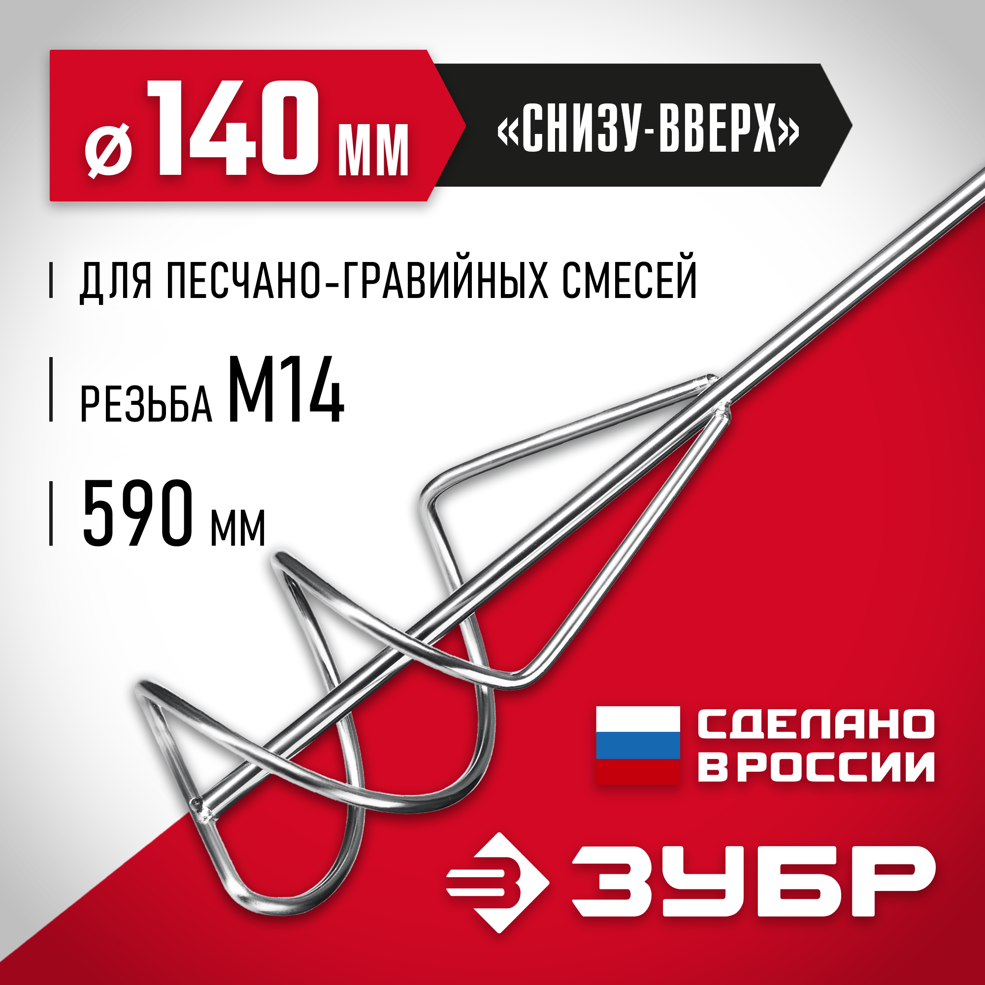 Насадка с лопастями для перемешивания песчано-гравийных смесей. Используется совместно с ручными миксерами ЗУБР ЗМР-1200Э-1, МР-1050-1, МР-1100, МР-1400-2 и МР-1600-2. Сделано в России