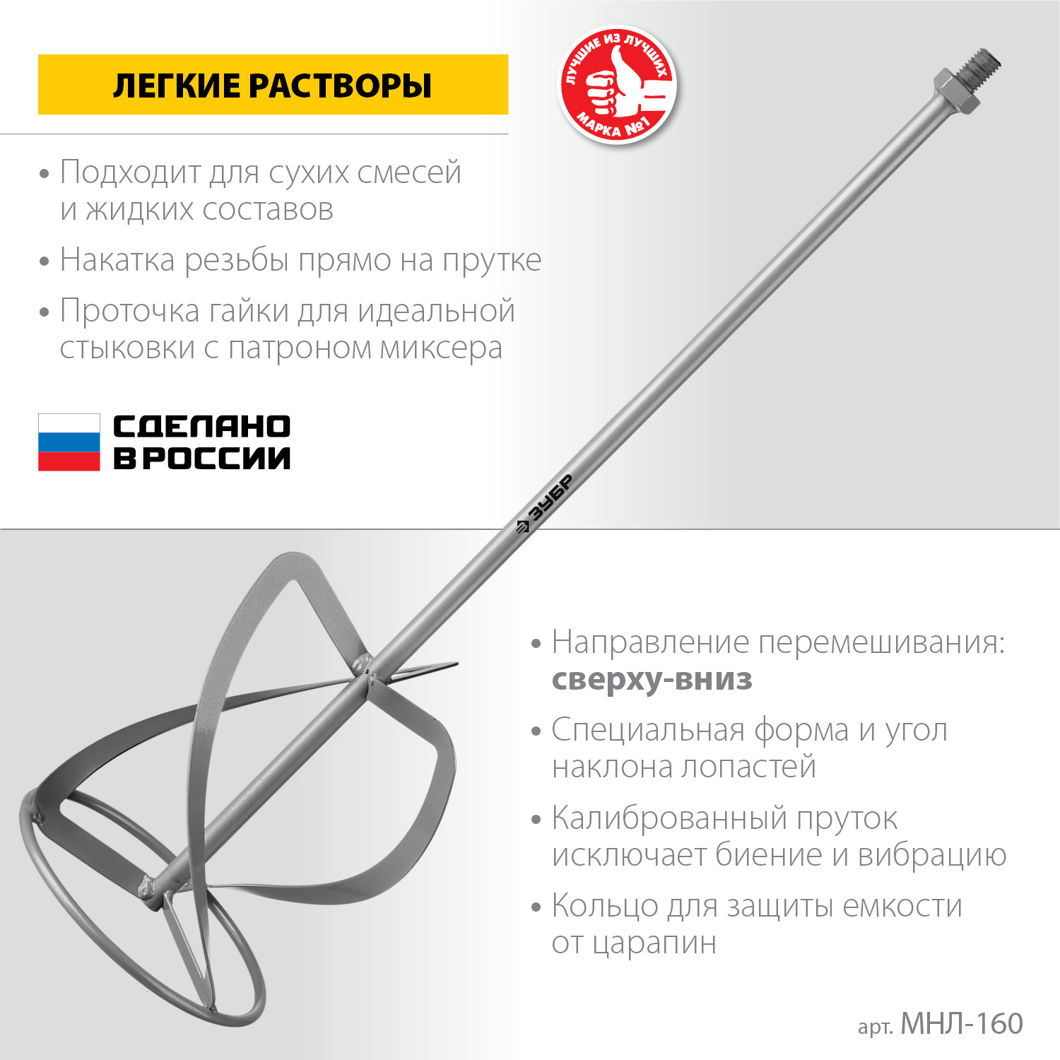 Насадка с лопастями для перемешивания легких растворов (краска, грунтовка, штукатурка, наливной пол, затирка). Используется совместно с ручными миксерами ЗУБР ЗМР-1200Э-1, МР-1050-1, МР-1100, МР-1400-2 и МР-1600-2. Сделано в России